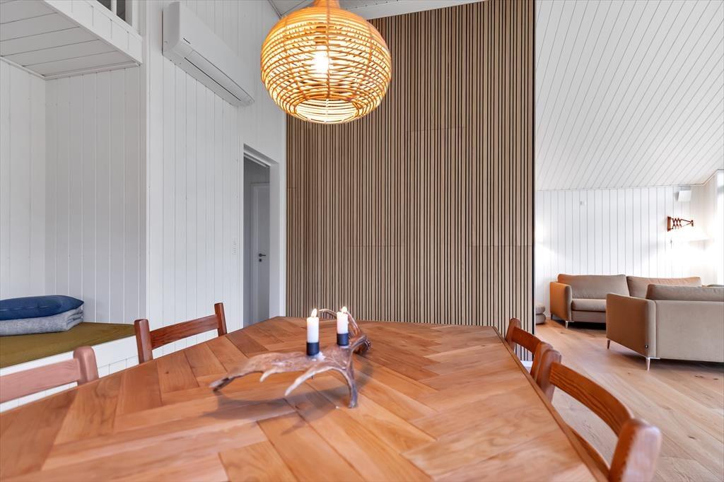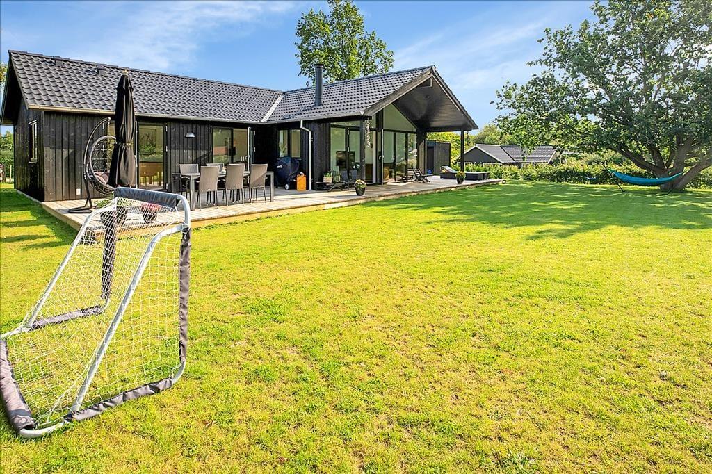 Sommerhuset er indrettet med lækker stue med fantastisk lysindfald. Her kan du fordybe dig i en god bog eller hvad med et slag kort og en latte. Der er Bluetooth højtaler, internet og du kan se netflix eller chromecaste via dit eget abonnement. I forbindelse med stuen er der et skønt åbent køkken med alt i udstyr bl.a. opvaskemaskine, her er der plads nok til at I kan hjælpes om at tilberede frokosten. Lækkert badeværelse med brus og tre dejlige soveværelser, det ene med dobbeltseng, det andet med to enkeltsenge. I det tredje er der både dobbelt underkøje og overkøje. Særdeles hyggelig have, med trampolin. Og vi skal bestemt også huske at nævne den fantastiske terrasse, hvor du både kan nyde solen fra morgen til aften og se et rådyr gå forbi. Der er masser af spil og legetøj i huset til børn i alle aldre. Alt i huset fremstår nyt, lyst og lækkert.