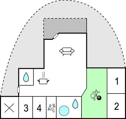 I et nyere feriehusområde og i gåafstand til den familievenlige sandbadestrand ligger dette akttraktive og personligt indrettet luksushus med alt, hvad hjertet kan begære. Det er optimalt og pragtfuldt indrettet med bl.a. et 30 m² stort aktivitetsrum for både voksne og børn indeholdende billard, bordtennis og dart. Der er to flotte badeværelser, hvoraf det ene med stor spa med plads til 3 - 4 pers. og sauna. Den eksklusive stue er smagfuldt møbleret og har en brændeovn. Fra stuen er der udgang til de skønne terrasser, hvor solen kan nydes fra morgen til aften.