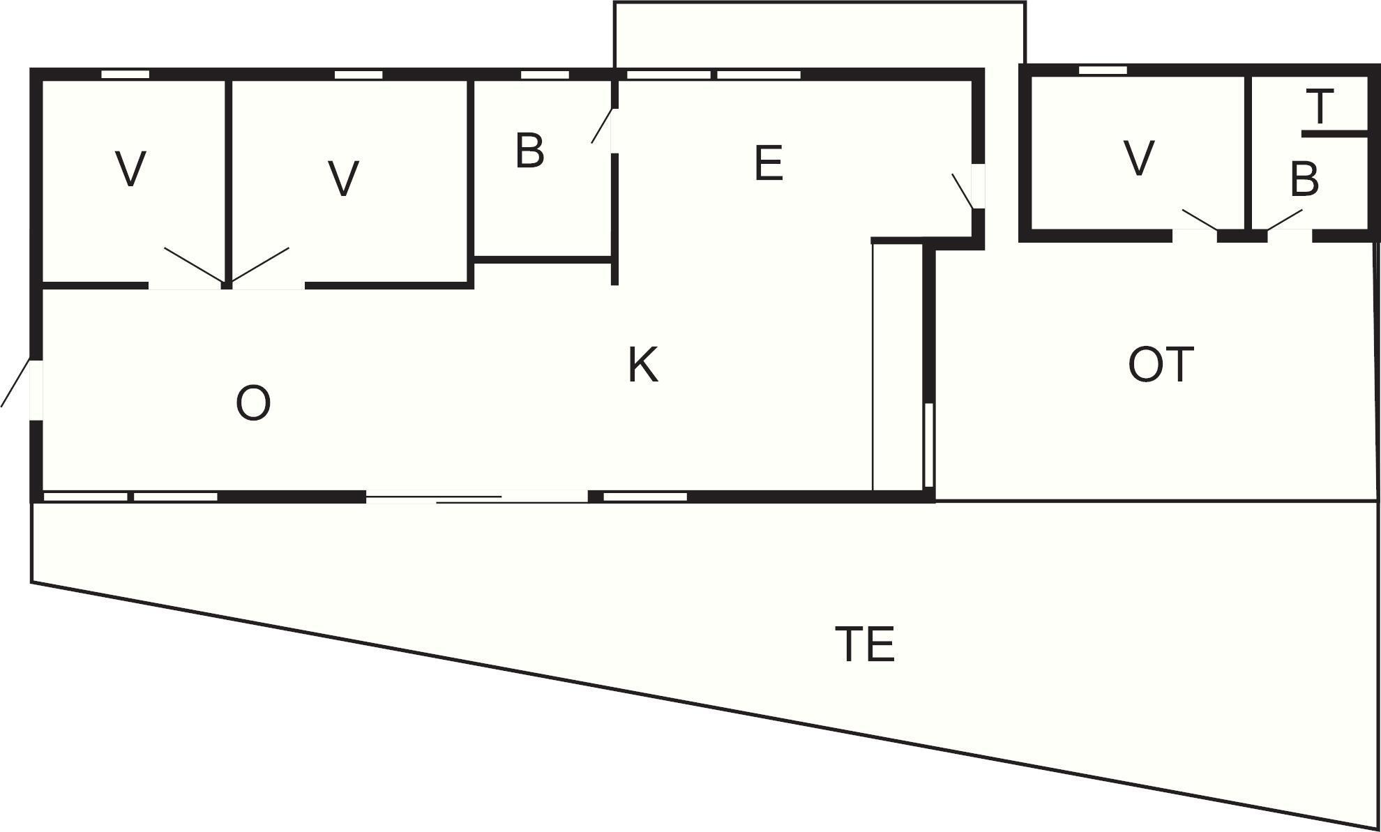 Køkkenet er i åbent plan og integreret i opholdsrummet, hvilket gør det til et ideelt sted for familielivet. Der er desuden to badeværelser, hvoraf det ene har udgang fra den store skønne træterrasse. Det samme gælder et af soveværelserne i huset. Der er i alt tre gode soveværelser at vælge imellem.