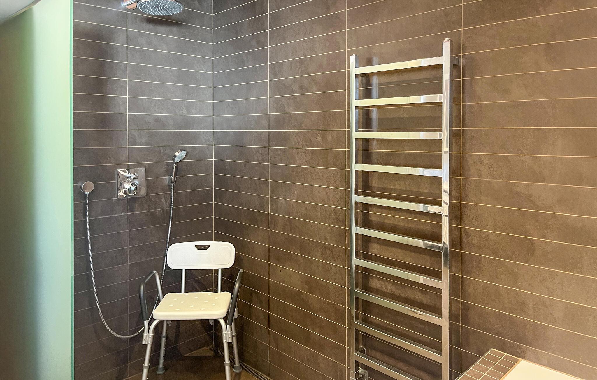 Velkommen til dette skønne landsted, som er oplagt til flere familier eller en stor gruppe venner, da huset er godt delt op i to adskilte afdelinger. Her kan I kombinere hygge med sjove aktiviteter og fortryllende naturoplevelser. Husets indre er noget særligt med rummelige værelser og gode indretningsdetaljer. Nyd dagens pauser i den lyse opholdsstue eller mærk den behagelige varme fra spabadet - det er ren luksus efter en aktiv dag. Den store spiseplads i udestuen giver plads til, at alle kan nyde måltiderne sammen. Indretningen kombinerer rustikke elementer med moderne komfort, hvilket giver jer de ideelle betingelser for at slappe af. I kan se frem til et skønt ophold i en bolig, der også er handicapvenlig.