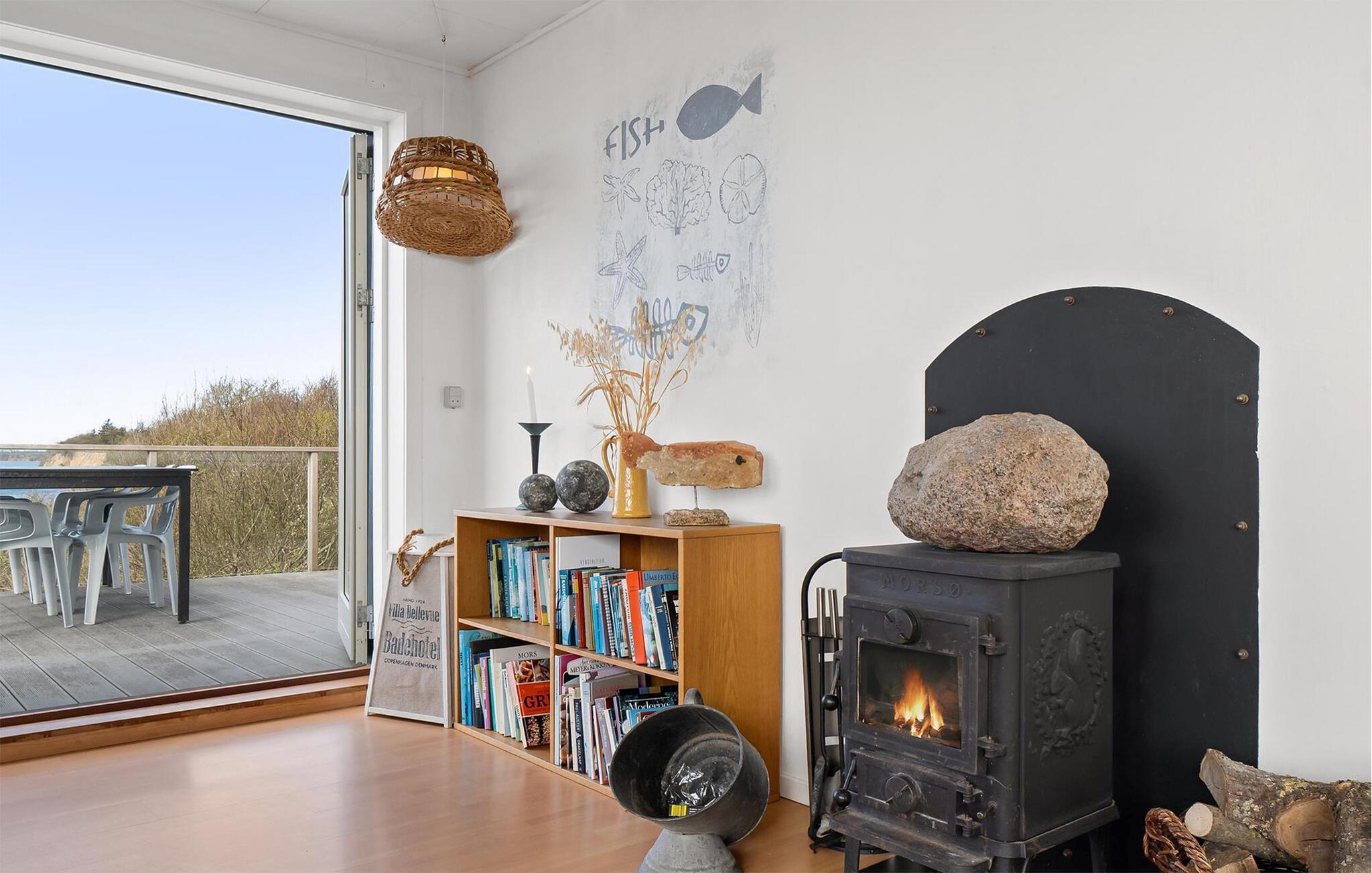 Velkommen til dette lækre sommerhus giver jer den perfekte oase til en afslappende ferie. Den fredfyldte beliggenhed lige ud til stranden skaber de optimale betingelser for at slappe af med familien. Lad blikket vandre over vandet og mærk, hvordan roen automatisk sænker sig. Opholdsstuen er et skønt sted at samles, for her kan I slå jer ned i de bløde sofaer og se en god film, mens ilden buldrer i brændeovnen. Find sammen om spisebordet og nyd måltiderne, som hver gang ledsages af den fantastiske udsigt.