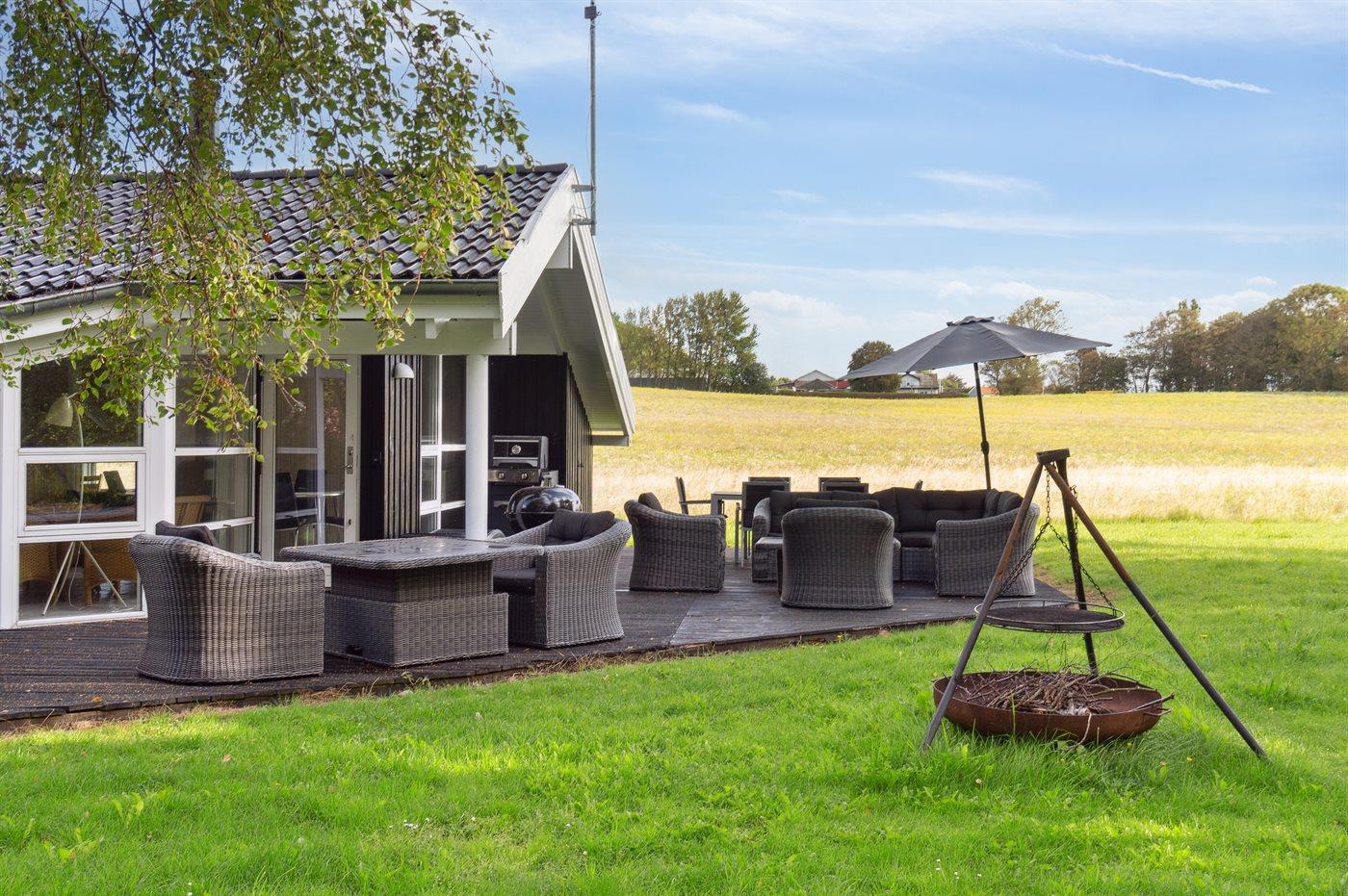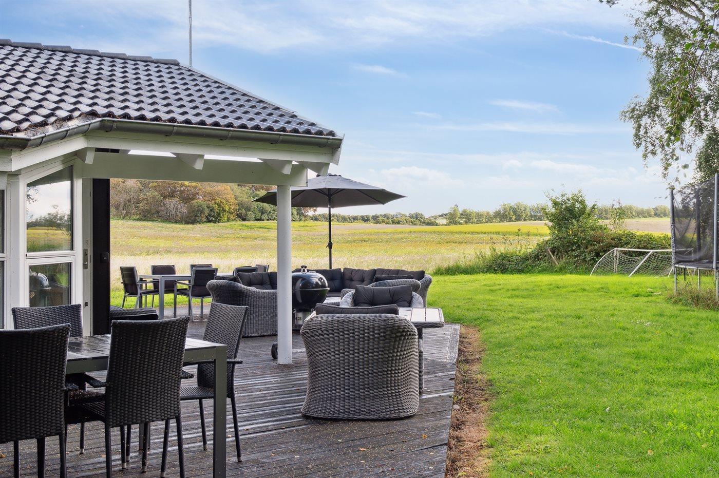 Rigtig dejligt sommerhus beliggende for enden af lukket vej, i et roligt og naturskønt område, ikke langt fra stranden med ny badebro. Fra hus og terrasse er der den skønneste udsigt over markerne for enden af grunden, med mulighed for at kunne se de mange dådyr og harer, som lever i området. Desuden gode fiskemuligheder lige i nærheden. Bemærk, 2 sovepladser befinder sig på husets hems.