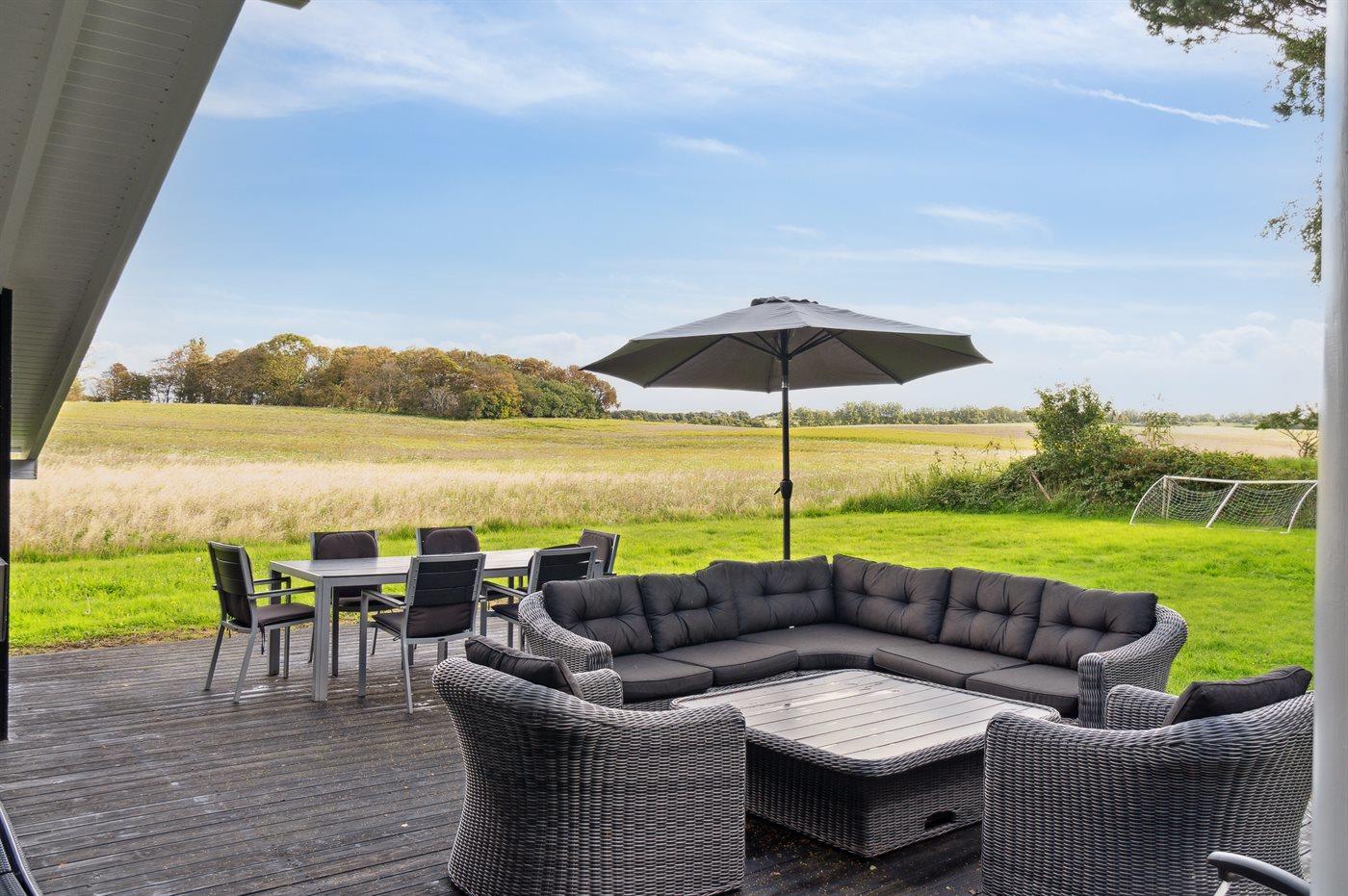 Hyggeligt sommerhus i naturskønt område nær stranden, med sauna, spa og udsigt over markerne.