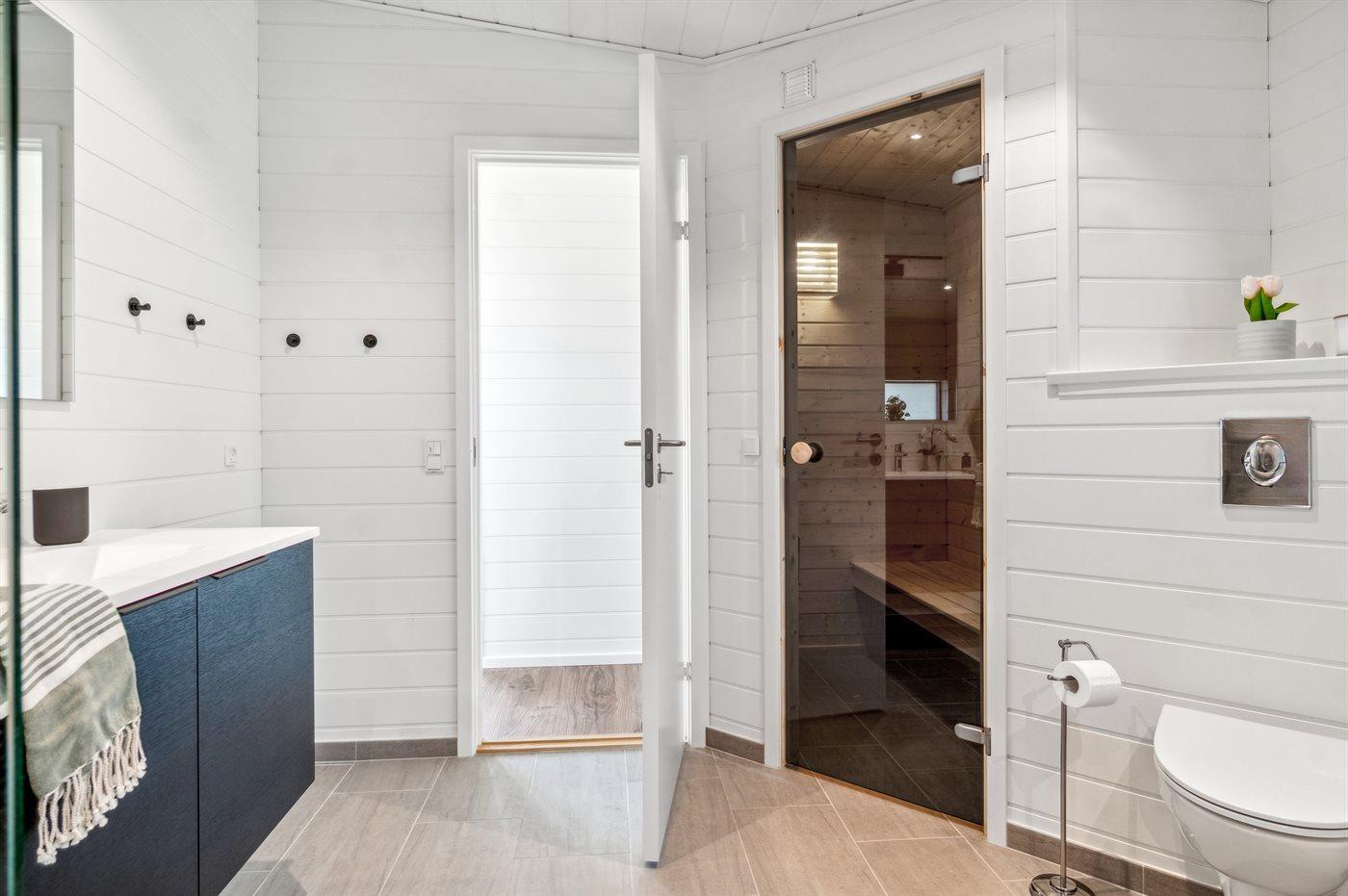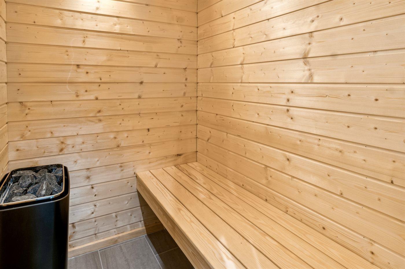 Der er 4 soveværelser, hvor de 2 er med dobbeltsenge. 1 soveværelse er med køjeseng med i alt 3 sovepladser og i det nordvendte værelse med fuld havudsigt, og som også fungerer som et hyggeligt område i forbindelse med stuen er en dobbelt sovesofa. Der er 2 badeværelser med gulvvarme, og i det største er der desuden spa, sauna og en kombineret vaskemaskine/tørretumbler.