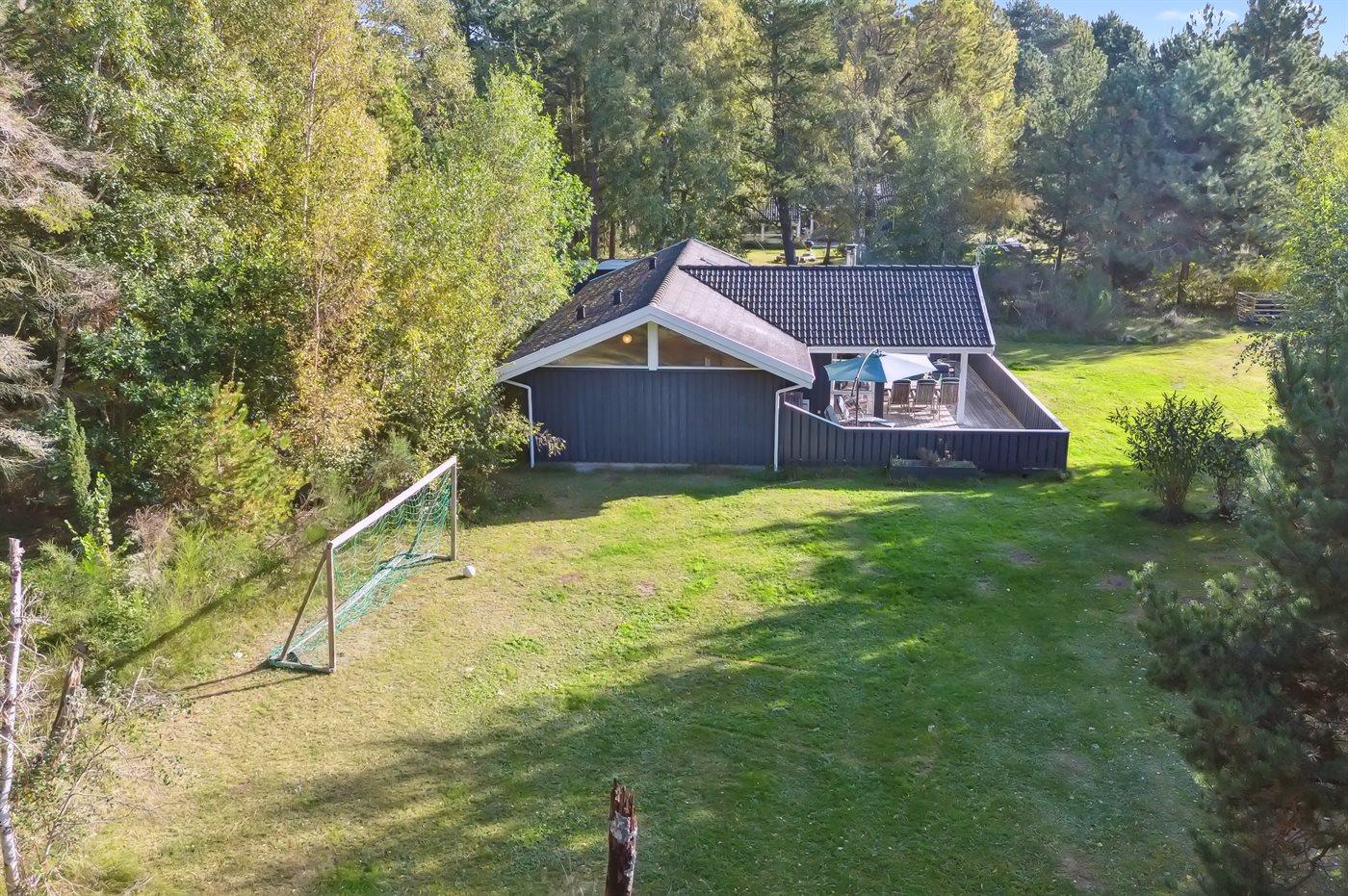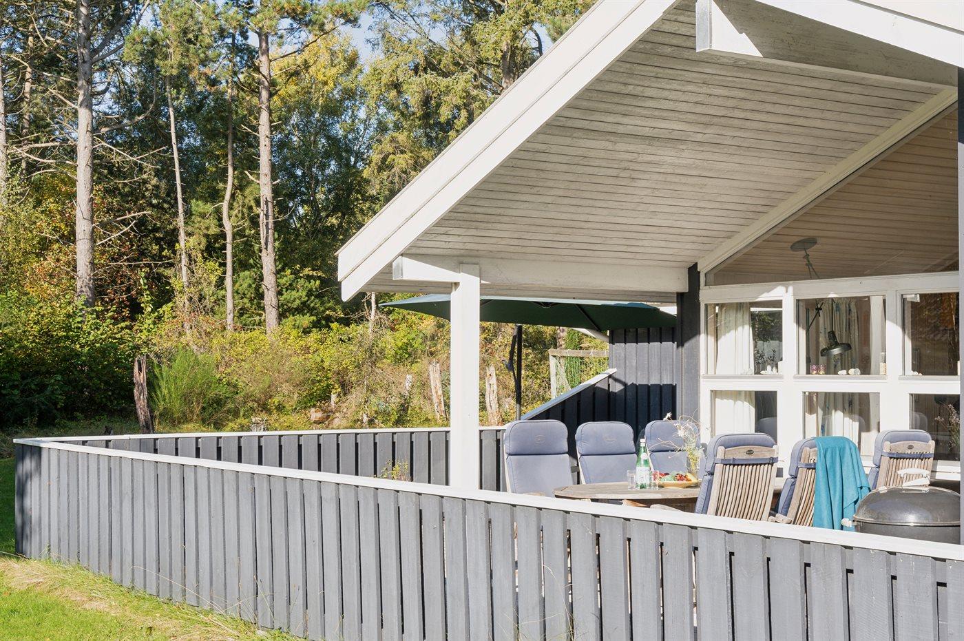 Ferieboligen er beliggende på en 1435 m² stor havegrund. Der er 250 m til havet. Der er en badebro i nærheden. Nærmeste forretning er beliggende i en afstand af 3300 m. Der er en golfbane i en afstand af 8150 m. Til ferieboligen hører 40 m² terrasseareal. Desuden er der 11 m² overdækket terrasse. Fodboldmål. Bålsted. Grill til rådighed. Parkering ved ferieboligen.