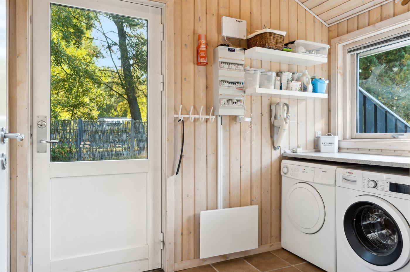 Huset indeholder et køkkenalrum i åben forbindelse med stuen og herfra er udgang til terrasseområdet. Der er 4 soveværelser. I 3 af soveværelserne er der dobbeltsenge og i det sidste soveværelse er 1 køjeseng med 2 sovepladser. Sovepladserne i køjesengen er på grund af målene på sengen bedst egnede til børn og unge mennesker. Der er 2 badeværelser med bruseniche og gulvvarme. I det største badeværelser er der desuden spa og sauna. I bryggerset er der vaskemaskine og tørretumbler.
