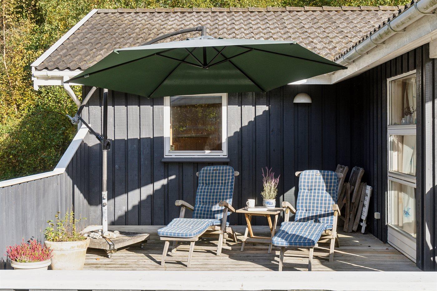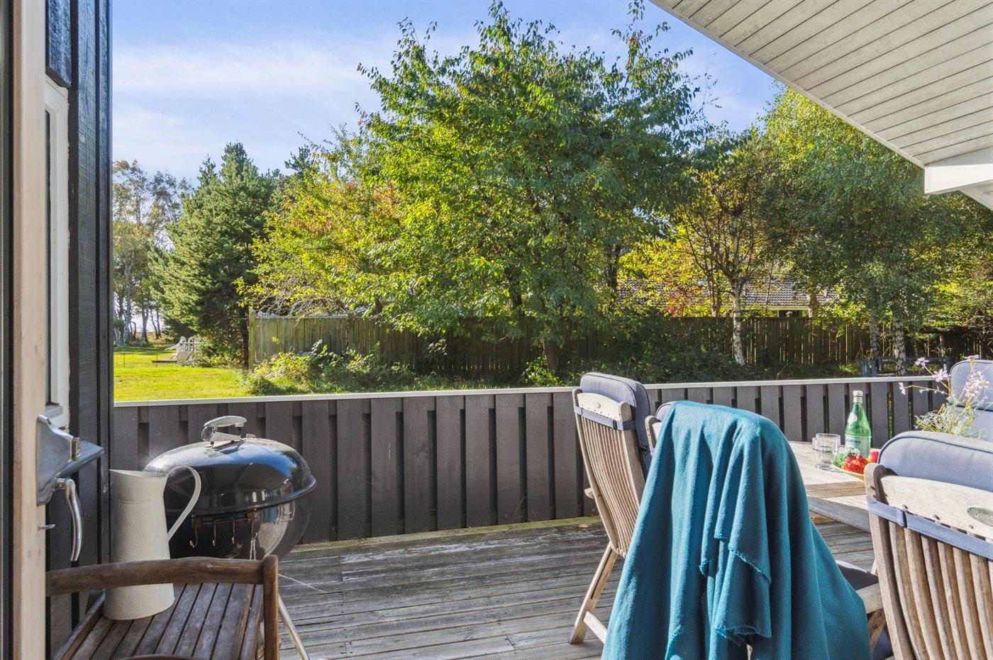 Vær opmærksom på, at rækværket om terrassen nu er fjernet for at åbne op til naturen omkring huset. Der kommer nye billeder i maj 2026.