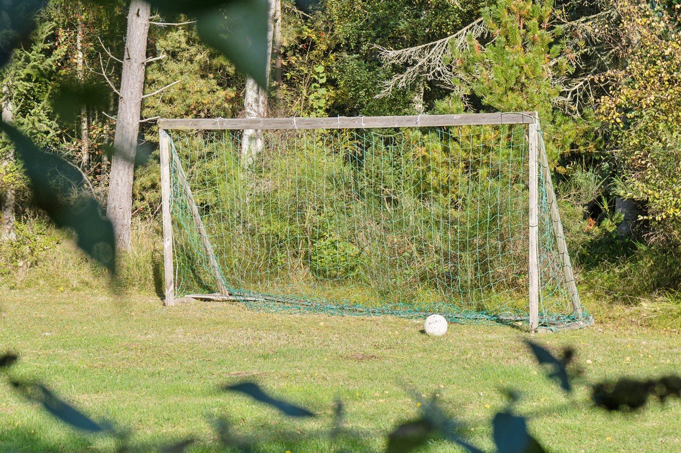 Huset er fredeligt beliggende for enden af en blind stikvej og børn kan derfor færdes sikkert. I den store have er der bålsted og fodboldmål og god mulighed for leg med børnene.