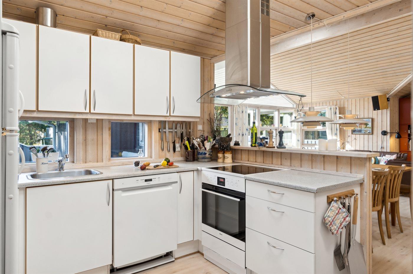 Køkkenet er udstyret med 1 køleskab. Der er 4 induktionskogeplader, varmluftovn, mikrobølgeovn samt opvaskemaskine.