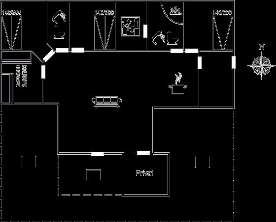 Der er 2 badeværelser med bruseniche og 2 toiletter. Der er gulvvarme på 2 badeværelser. I saunaen er der mulighed for afslapning.