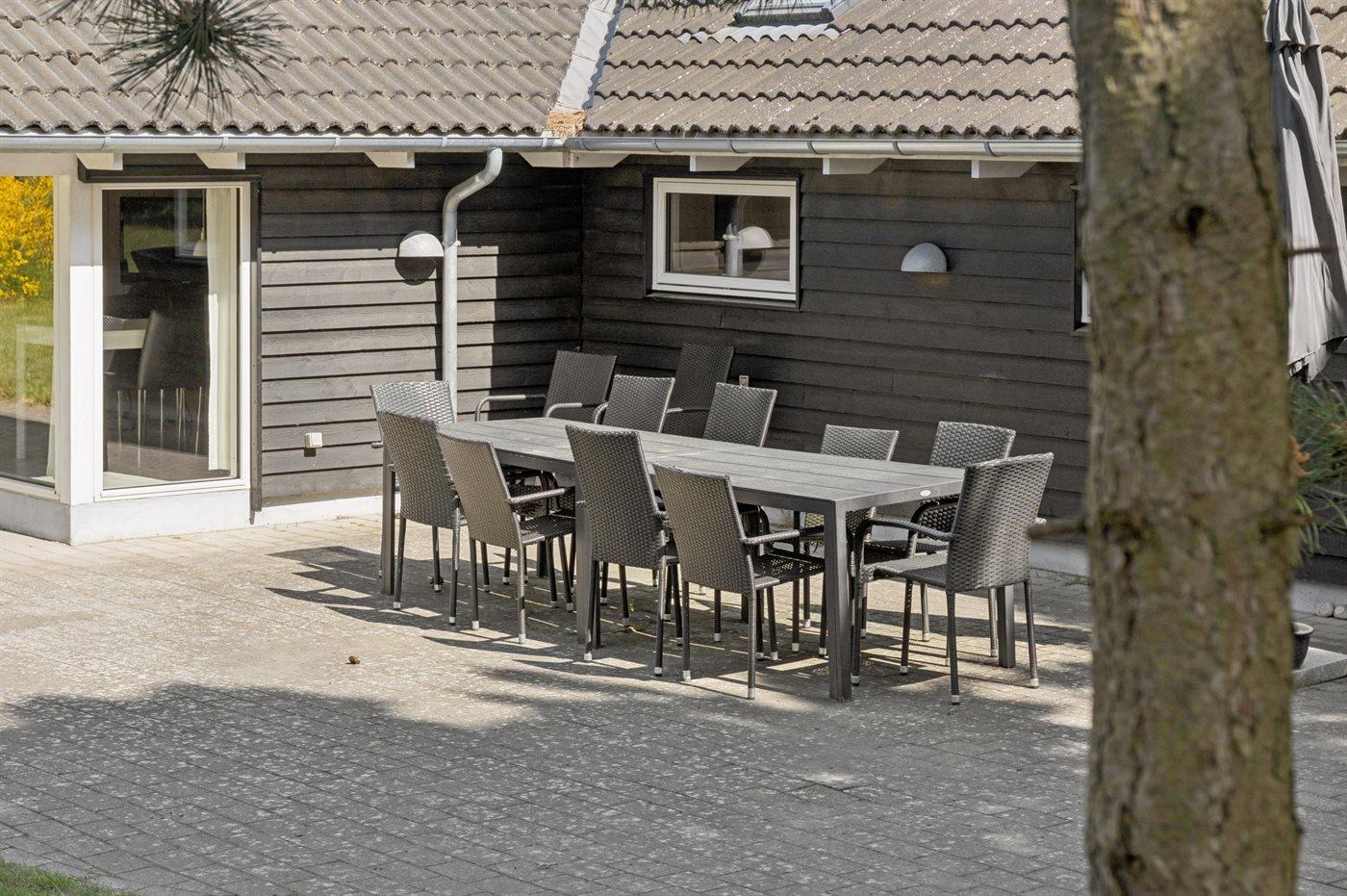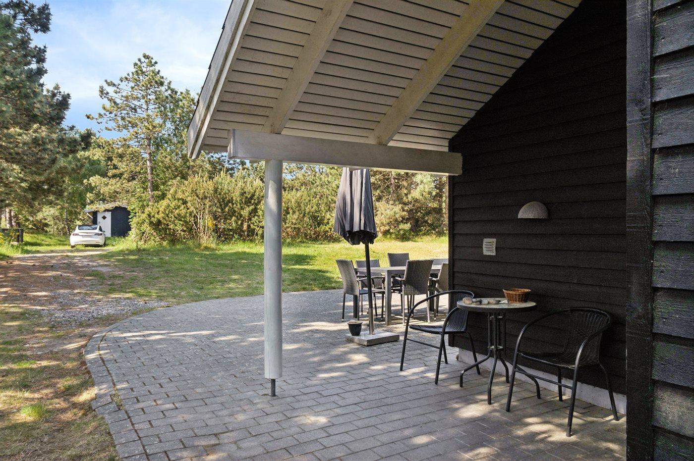 Ferieboligen er beliggende på en 1520 m² stor naturgrund. Der er 225 m til havet. Nærmeste forretning er beliggende i en afstand af 4350 m. Der er en golfbane i en afstand af 18500 m. Til ferieboligen hører åbent terrasseareal. Desuden er der overdækket terrasse. Der er redskabsrum. Gynge. Sandkasse. Grill til rådighed. Parkering ved ferieboligen.