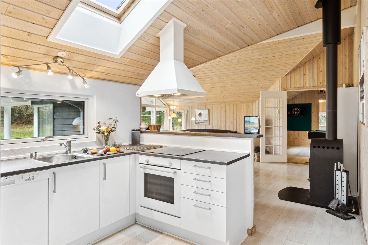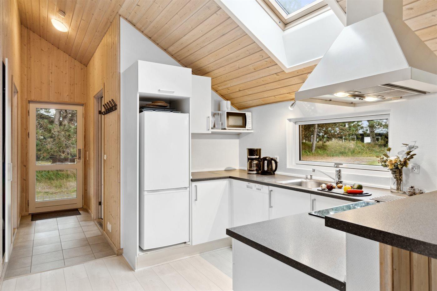 Køkkenet er udstyret med 1 køleskab. Der er 4 keramiske kogeplader, varmluftovn, mikrobølgeovn samt opvaskemaskine.