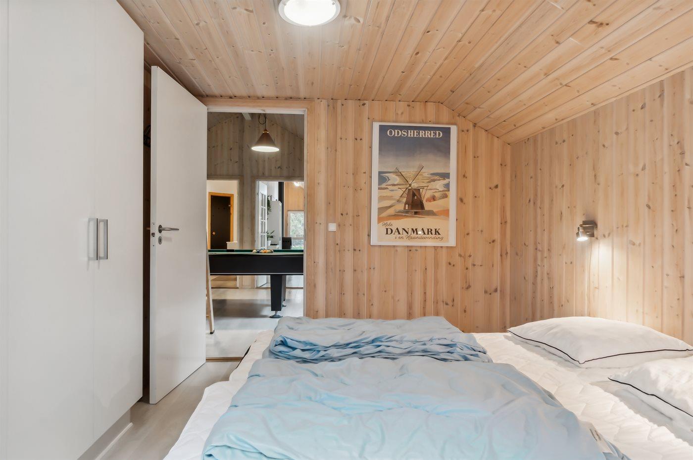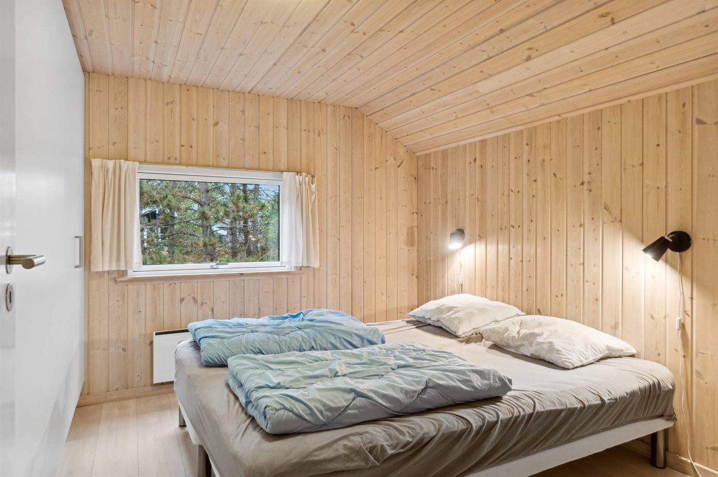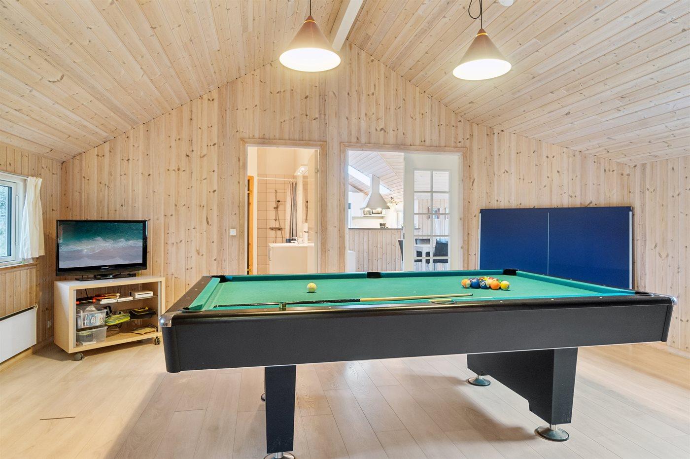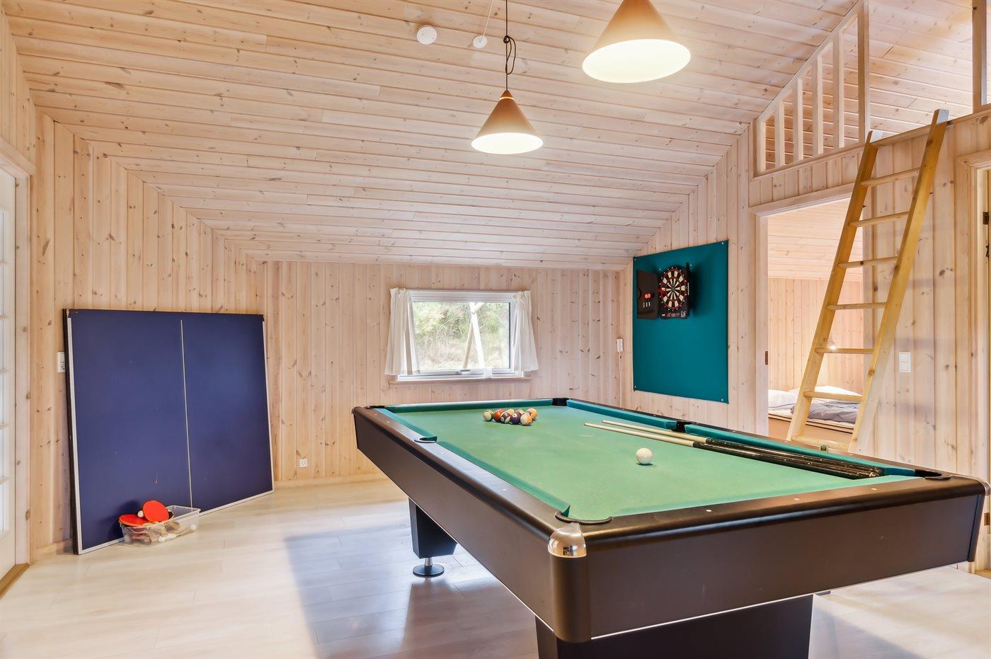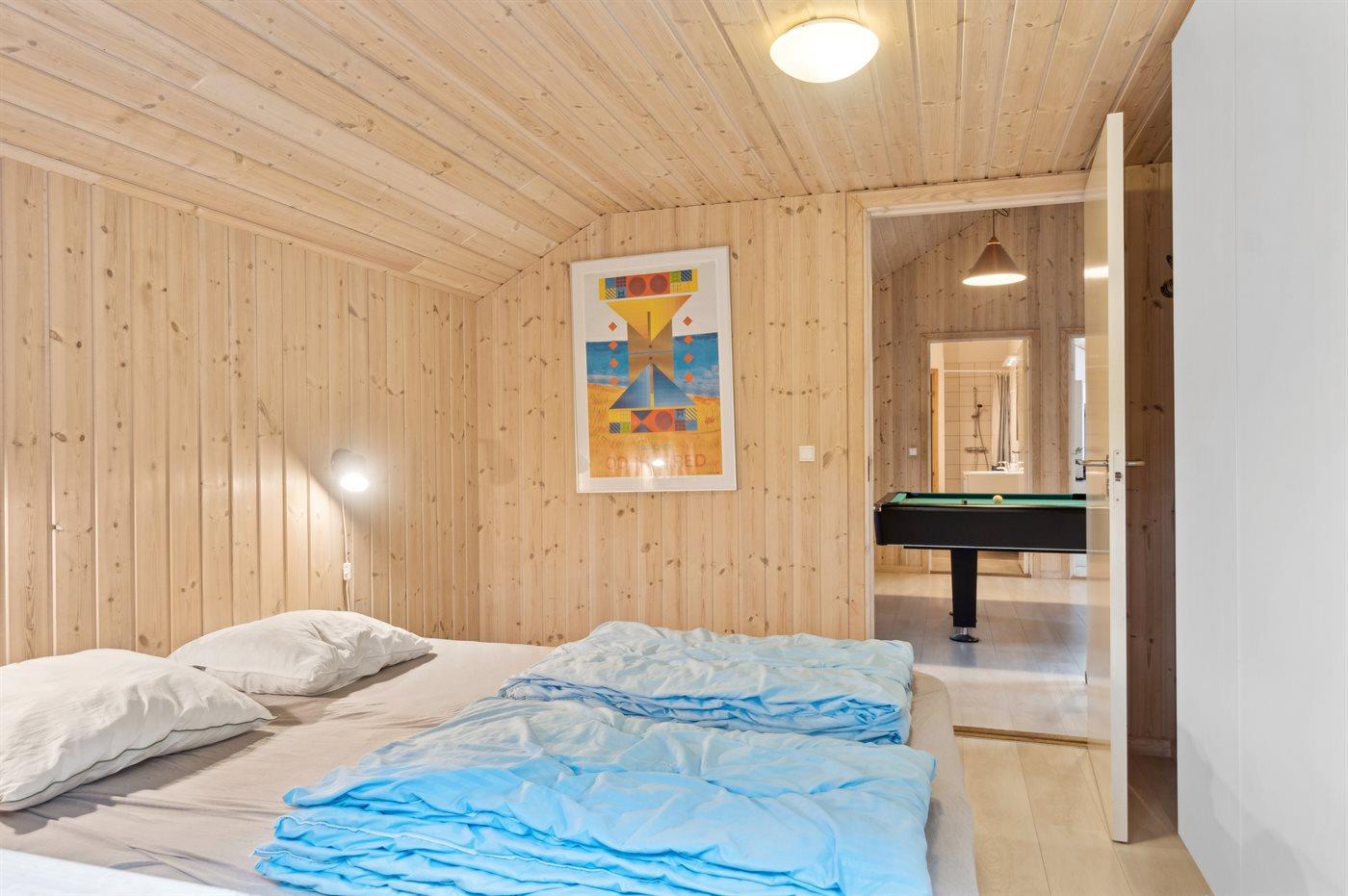 Fra det store køkken-alrum, som ligger i åben forbindelse med stuen, er der udgang til det store sydvestvendte og til dels overdækkede terrasseområde. I aktivitetsrummet er der rig mulighed for at hygge sig og spille billard, bordtennis og dart. Huset er indrettet med 4 soveværelser, alle med 2 sovepladser samt en hems med 4 sovepladser. Der findes 2 badeværelser med bruseniche og gulvvarme. I det største af badeværelserne er der desuden spa og sauna. I det mindste er der vaskemaskine og tørretumbler.