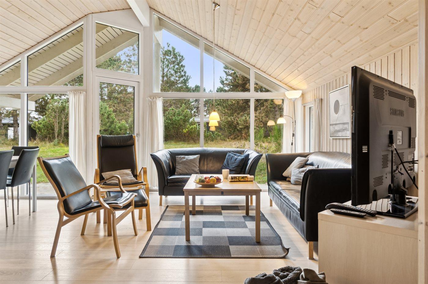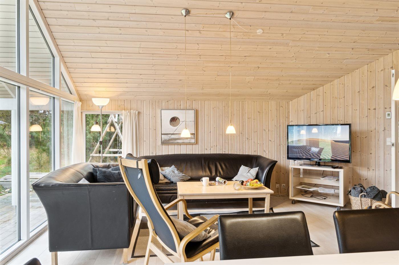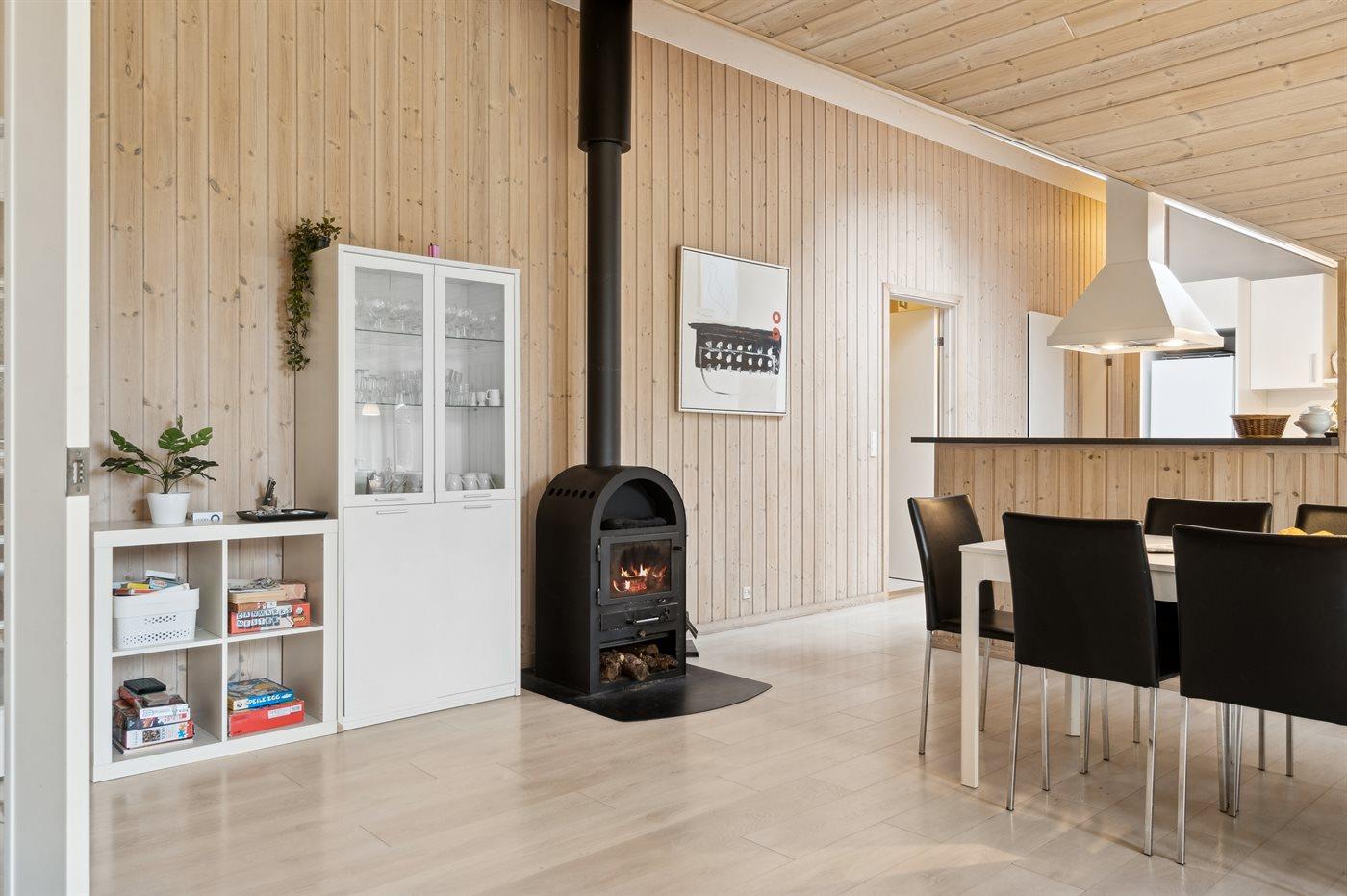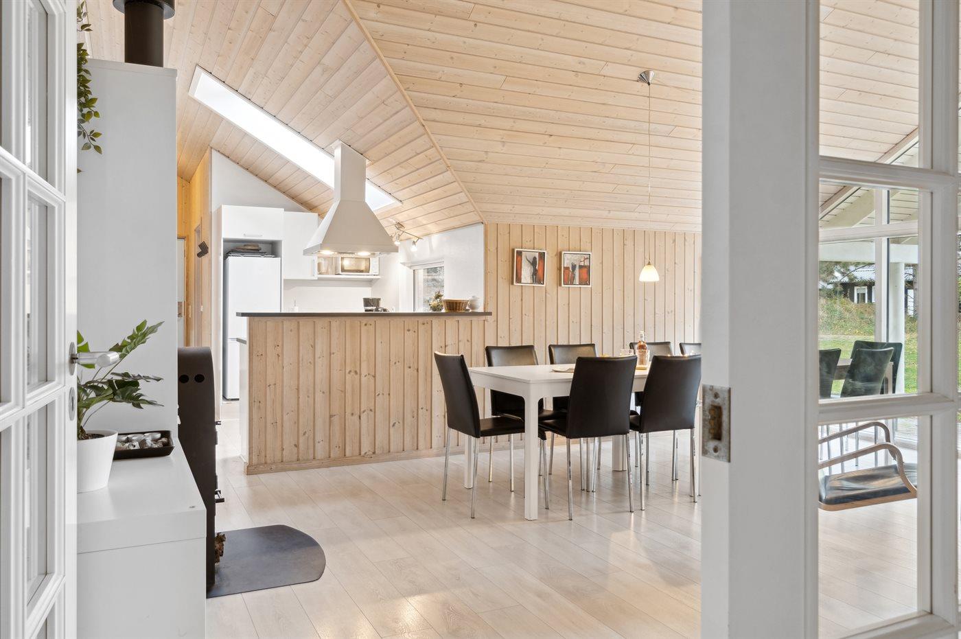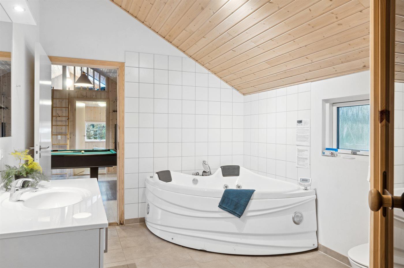 Fra det store køkken-alrum, som ligger i åben forbindelse med stuen, er der udgang til det store sydvestvendte og til dels overdækkede terrasseområde. I aktivitetsrummet er der rig mulighed for at hygge sig og spille billard, bordtennis og dart. Huset er indrettet med 4 soveværelser, alle med 2 sovepladser samt en hems med 4 sovepladser. Der findes 2 badeværelser med bruseniche og gulvvarme. I det største af badeværelserne er der desuden spa og sauna. I det mindste er der vaskemaskine og tørretumbler.