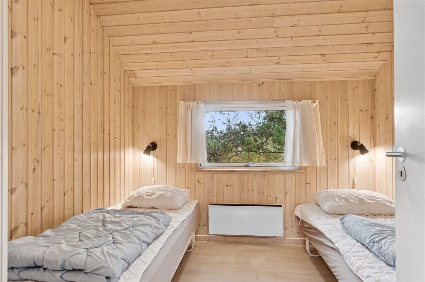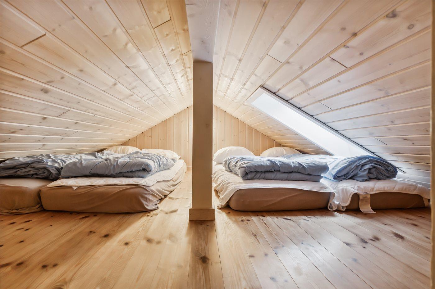 Der er i alt 4 soveværelser. Sovepladserne fordeler sig på: 4 sovepladser i dobbeltsenge. 4 sovepladser i enkeltsenge. 4 sovepladser på madrasser. 4 af disse sovepladser befinder sig på husets hems. Derudover er der 1 stk. barneseng.