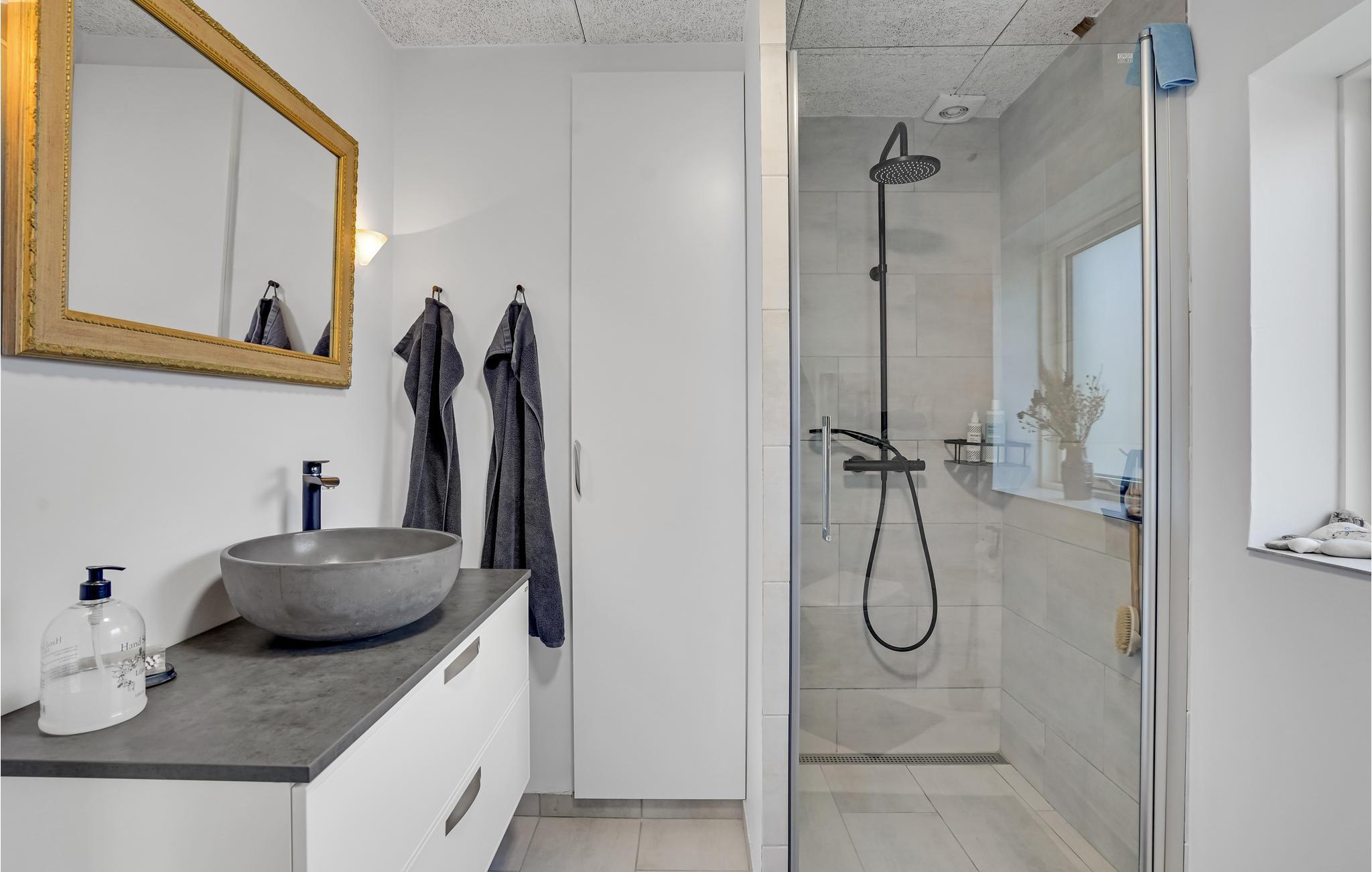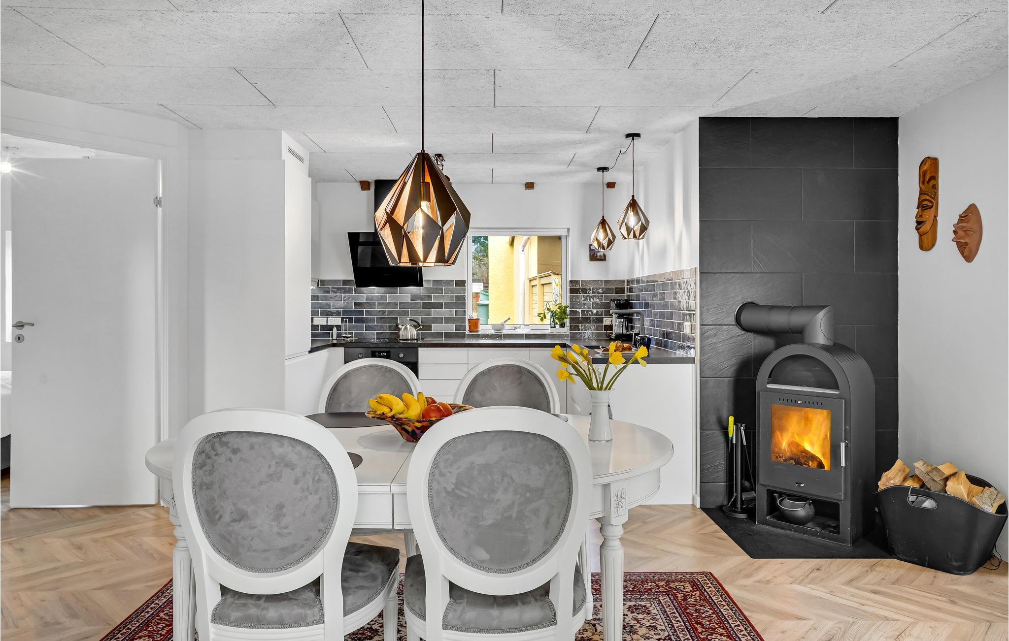 Dette rummelige feriehus forener gammelt og nyt til en helhed, så I både får komforten af et moderne, veludstyret køkken og kan nyde charmen fra det ældre spisebord, når I samles om måltiderne. Efter et par rolige timer om morgenen kan I vælge at blive hjemme eller tage på en udflugt ud i det flotte kystlandskab. I stue finder I stuen flere flere gode siddepladser, hvor I kan slappe af med en bog, spille spil eller løse en krydsogtværs. Udenfor finder I også flere kroge, hvor I kan slappe af med en kop kaffe, mens de små leger og tumler på græsplænen. I kan også gå en lille tur ned til stenstranden, hvor der er frisk luft, gode muligheder for at bade og gå tur.