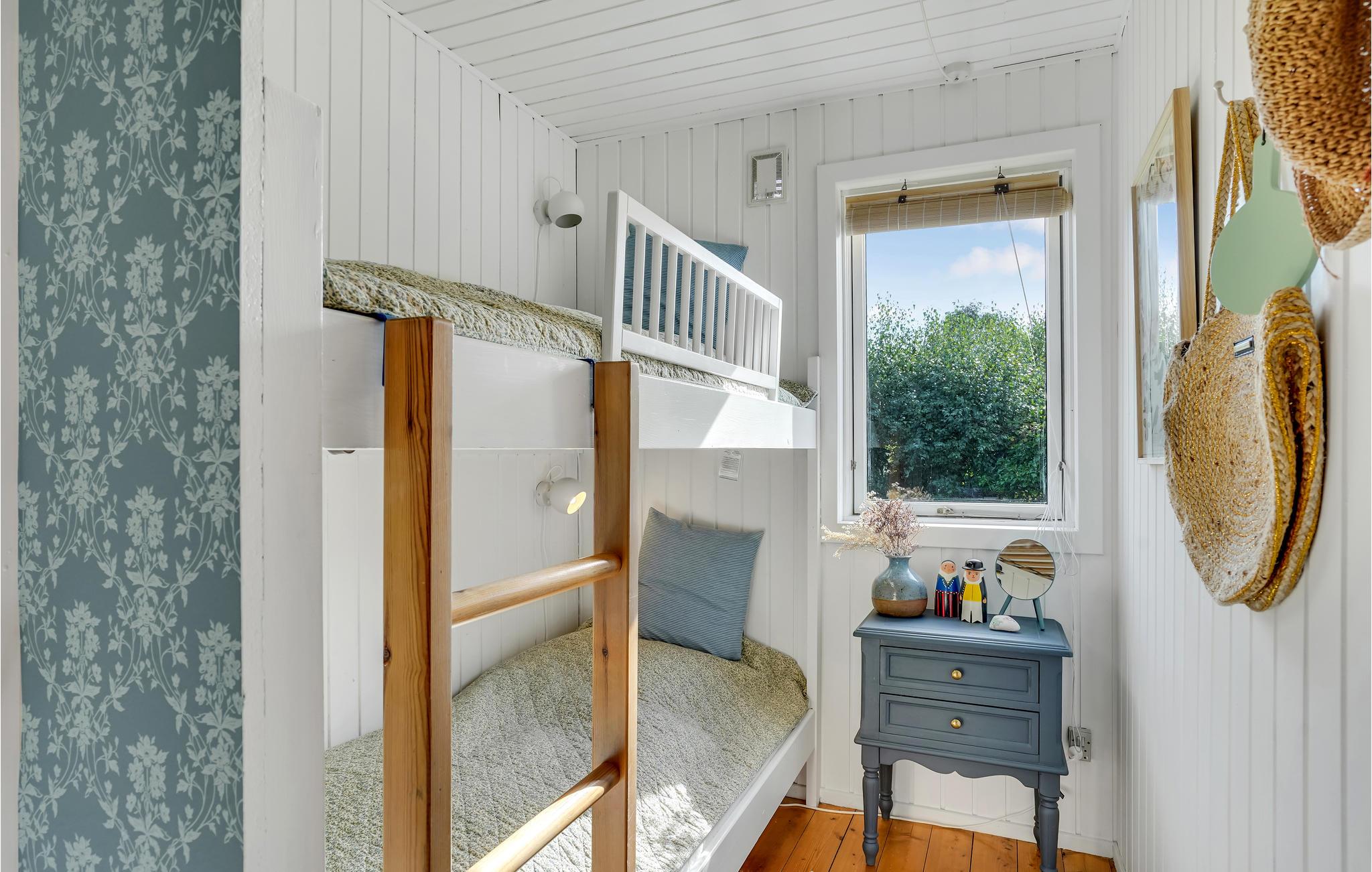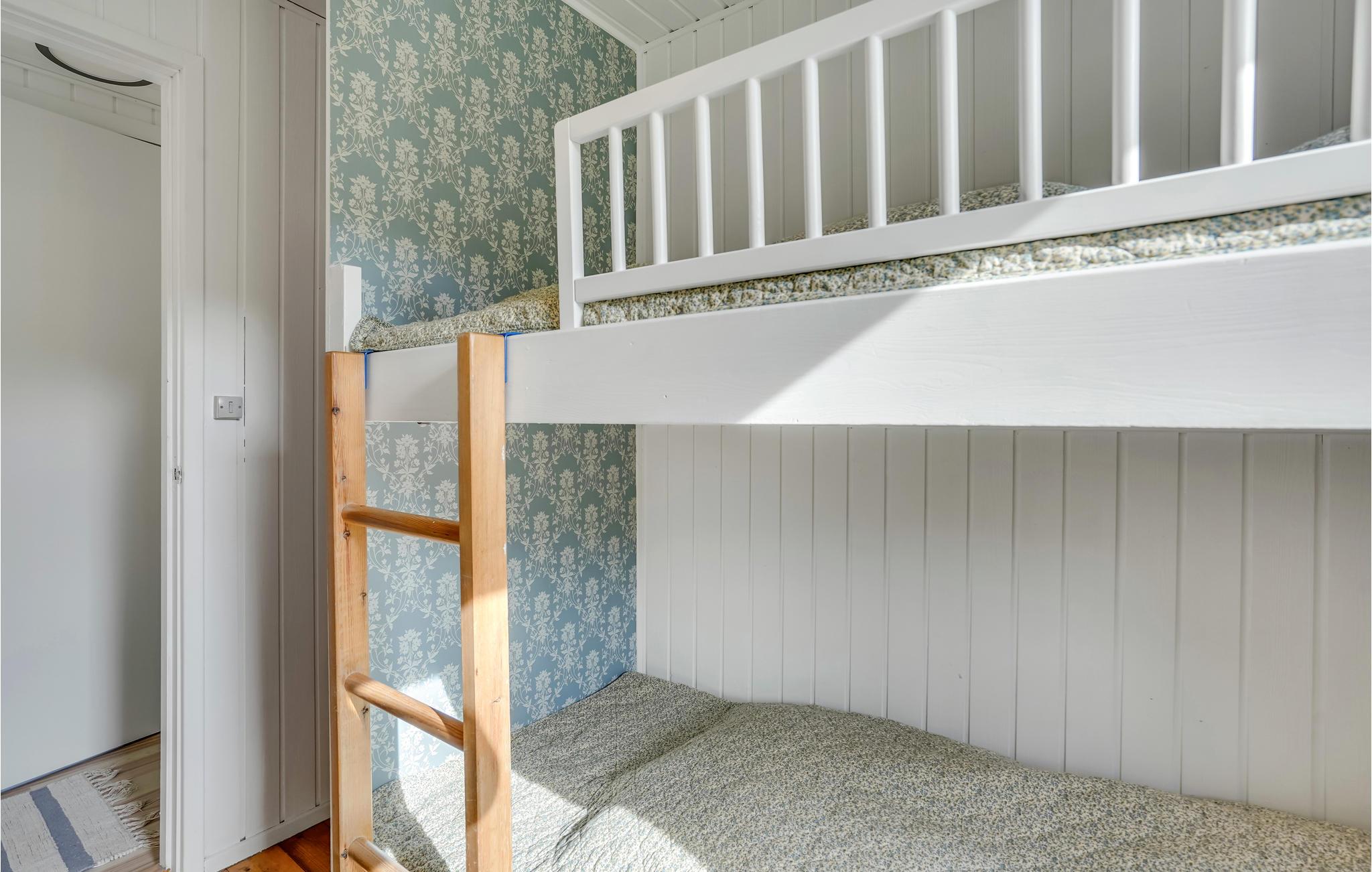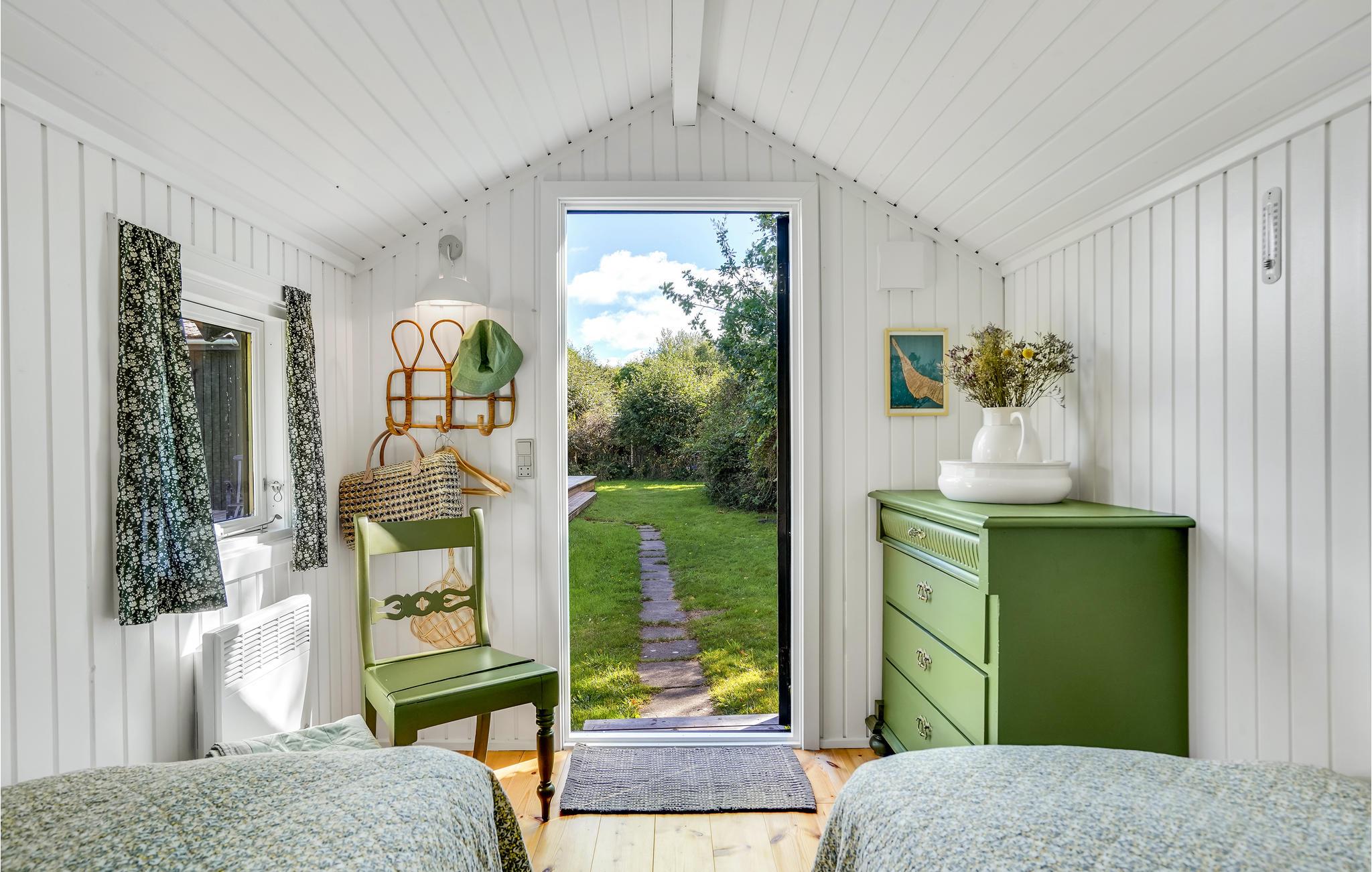 Bliv budt velkommen af en indbydende atmosfære, hvor hvide træbeklædninger og store vinduespartier sørger for masser af lys. Hyg jer sammen på sofaen i den smagfuldt indrettede stue, og nyd udsigten til det grønne. Slap af ved den knitrende ild i brændeovnen, eller tag plads ved spisebordet, som ligger i åben forbindelse med køkkenet.