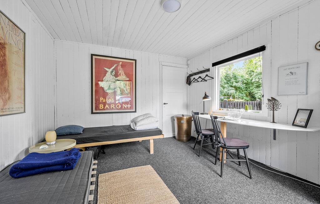 Nyd ren hygge i dette smukt indrettede feriehus. En afslappende familieferie venter jer i det idylliske Yderby Lyng på næsset af Sjællands Odde, som byder på både spændende aktiviteter og afslappende timer. Med sin charmerende atmosfære skaber det indbydende feriehus de optimale rammer for uforglemmelige fælles oplevelser. Begynd jeres dage med en lækker morgenmad, som I kan tilberede i det veludstyrede køkken. Tag plads ved det hyggelige spisebord eller nyd jeres måltider udenfor på terrassen under den skyggefulde parasol. Der tilbydes også sportsaktiviteter. Udfordr familien til et spil bordtennis eller vær vært for en familie fodboldturnering. Mens de voksne slapper af på terrassen og nyder naturen, kan børnene løbe rundt i haven. Om aftenen samles hele familien på terrassen til en lækker grillaften og slutter dagen af i godt selskab. En gåtur til den nærliggende strand lægger op til at indånde den friske havluft og nyde omgivelsernes vidunderlige stilhed. Besøg udsigtspunktet Klintebjerg og bliv fortryllet af den imponerende udsigt over hav og landskab. Eller tag en tur til forlystelsesparken Sommerland Sjælland, hvor talrige attraktioner sikrer en spændende dag for store og små.