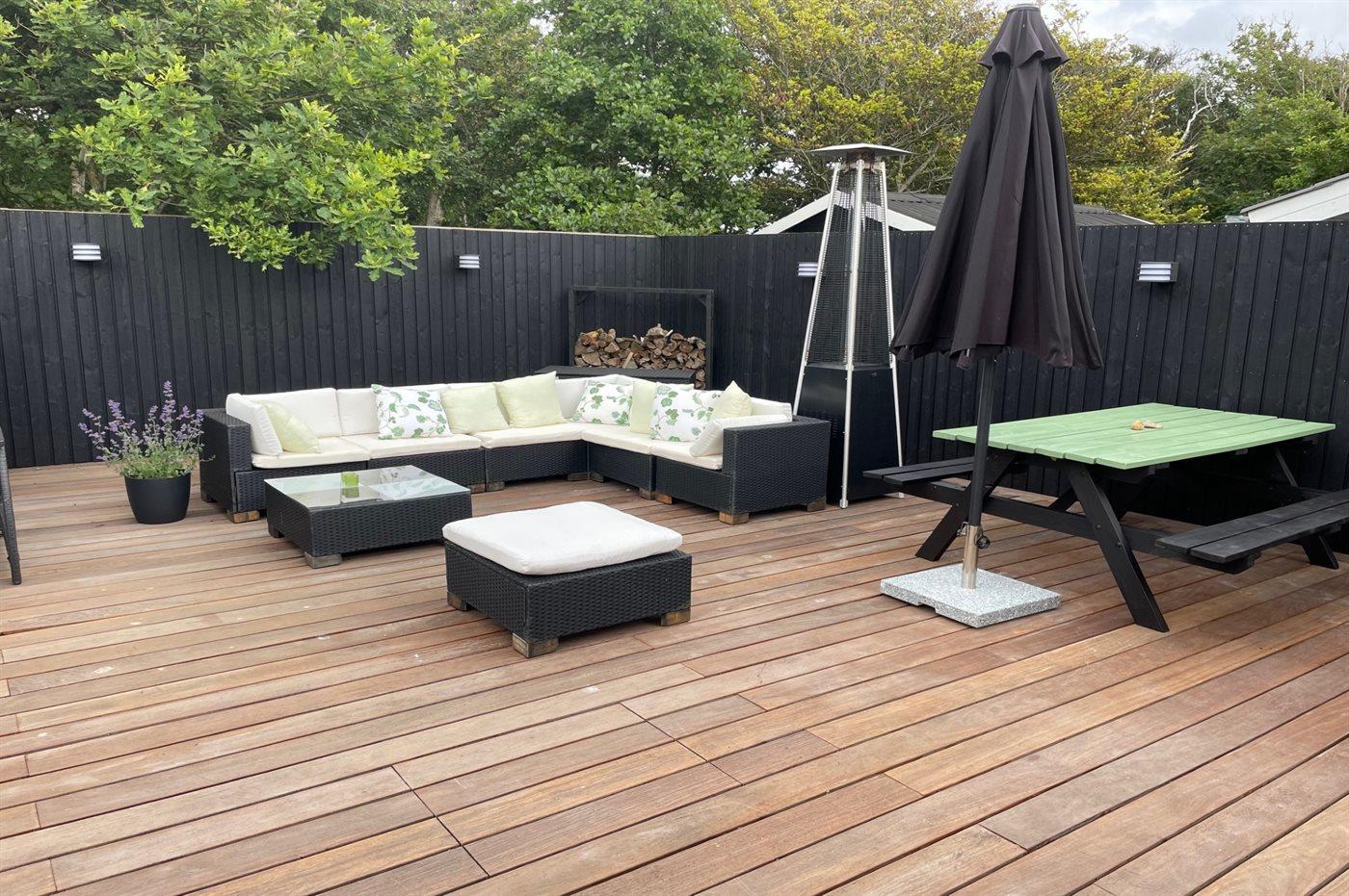 Sommerhuset ligger kun 15 meter fra Ho bugt – i et roligt område med strand, skov og sø.