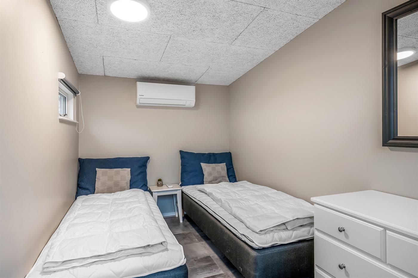 Der er i alt 3 soveværelser. Sovepladserne fordeler sig på: 2 sovepladser i dobbeltseng. 4 sovepladser i enkeltsenge.
