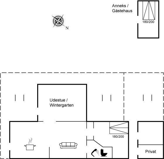 Der er i alt 2 soveværelser. Sovepladserne fordeler sig på: 4 sovepladser i dobbeltsenge. 2 af disse sovepladser befinder sig i anneks.