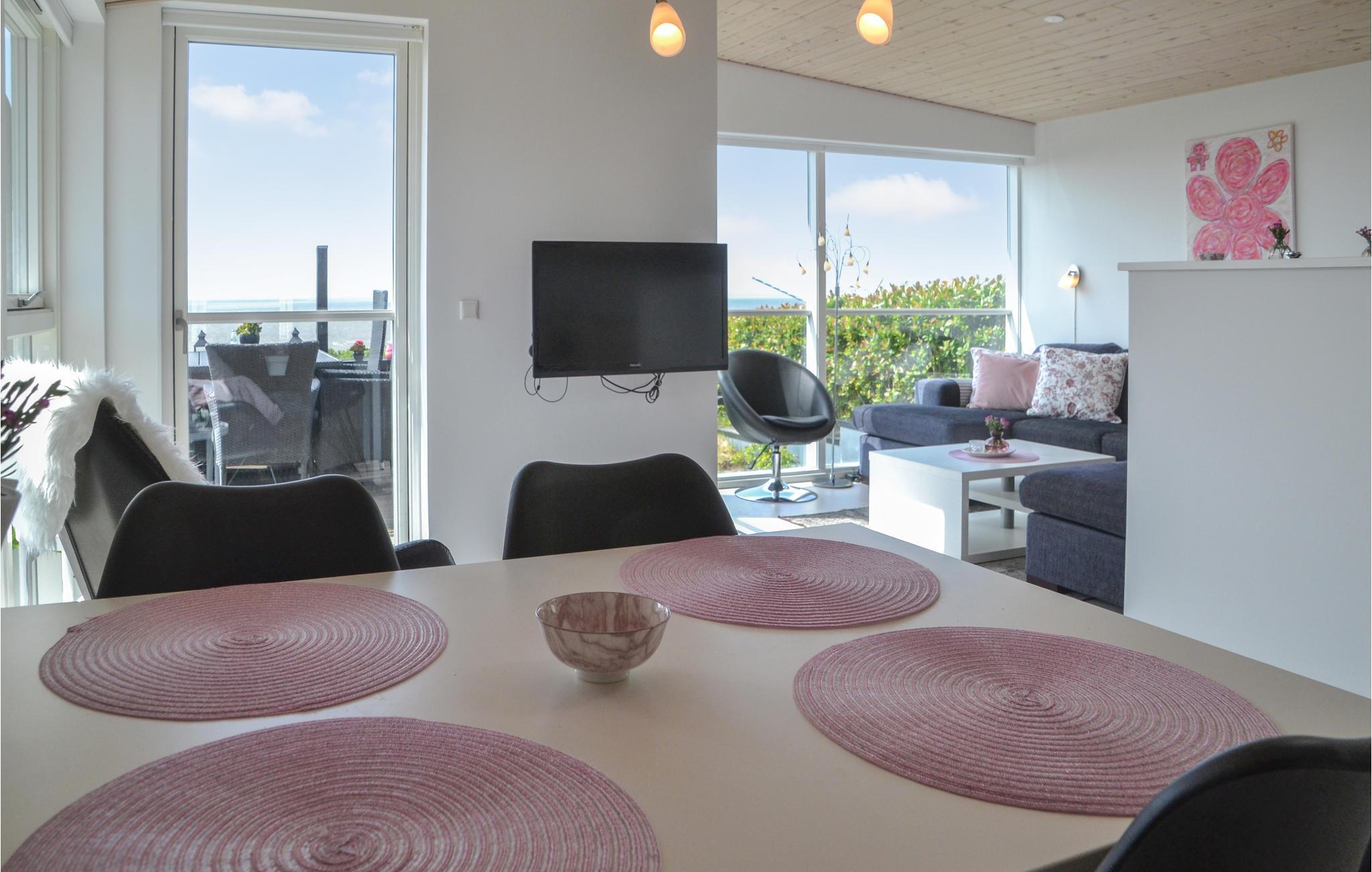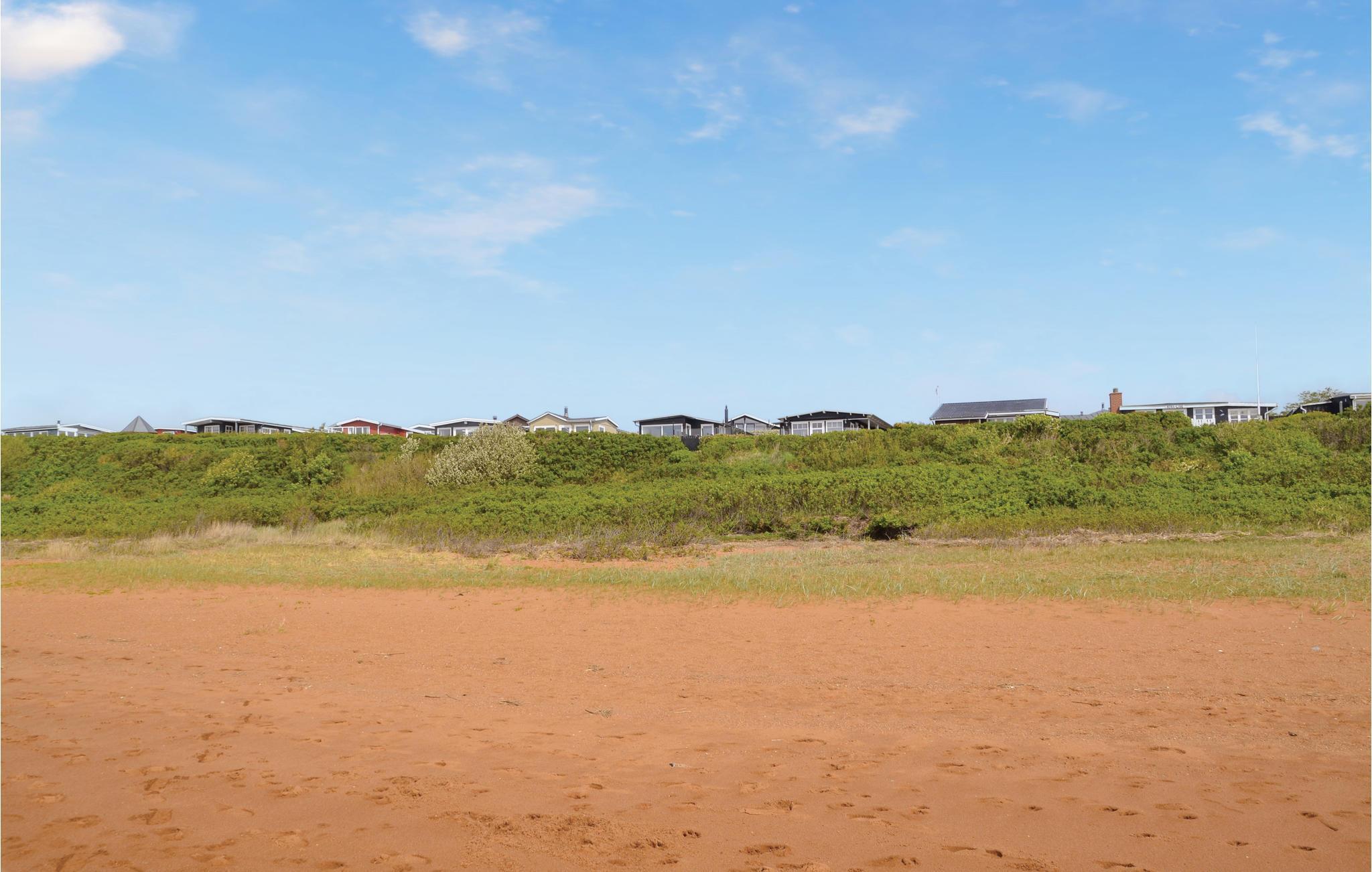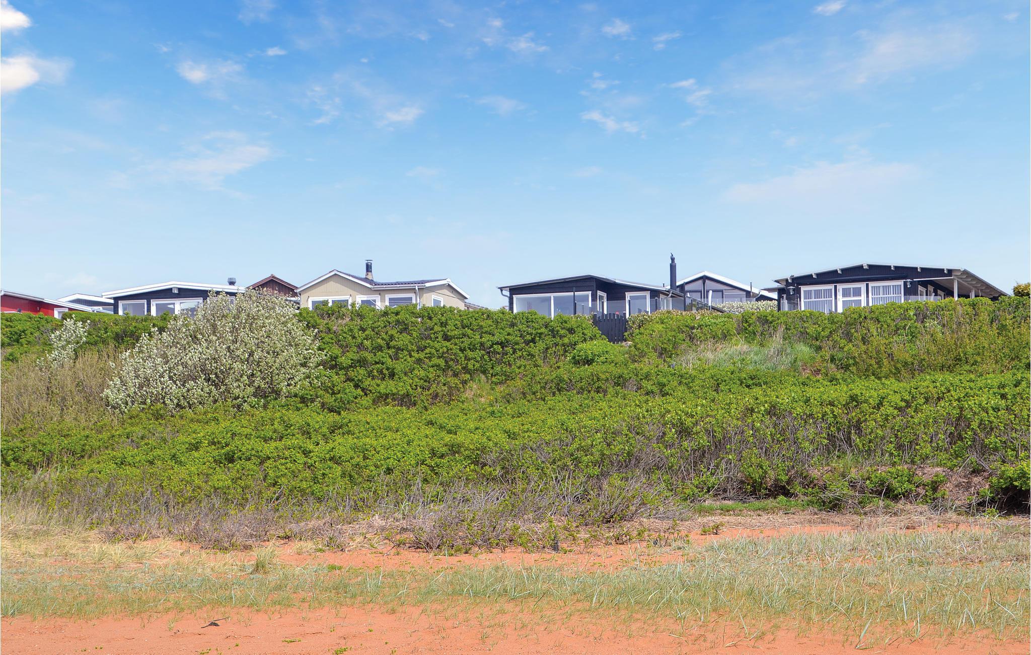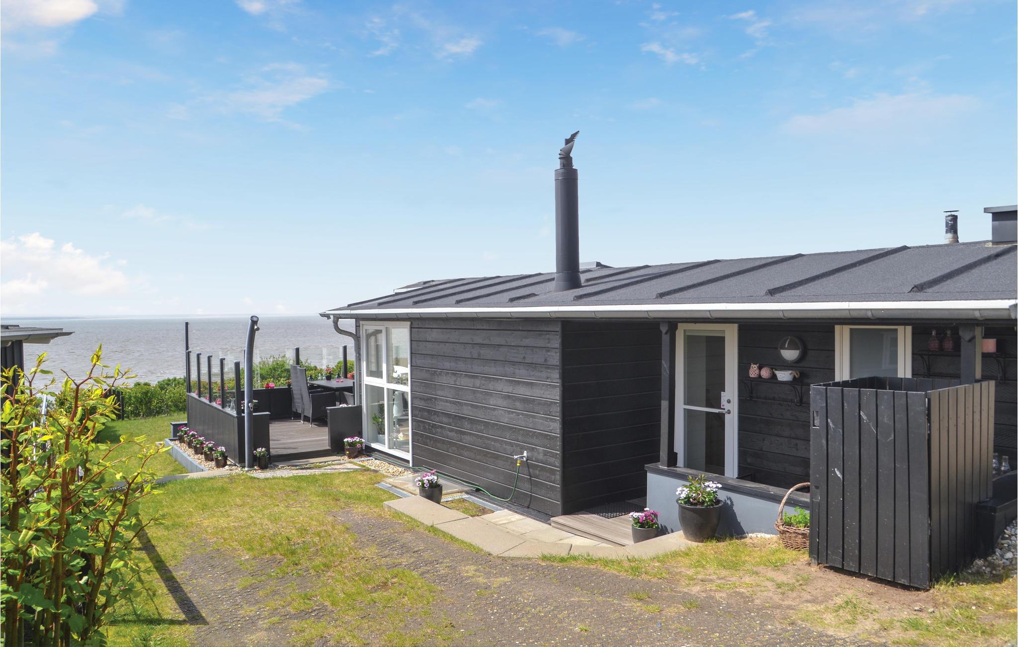 Eksklusivt sommerhus med en enestående beliggenhed helt ned til strandkanten og selvfølgelig med panoramaudsigt fra huset over Vesterhavet og indsejlingen til Esbjerg og Fanø. I klart vejr kan Blåvand Fyr ses ude mod vest. Feriehuset er i to plan med et godt indrettet køkken, der er åbent mod stuen med panoramavinduer mod havet og med brændeovn samt klimaanlæg. Fra feriehuset er der sti til strande, og ved terrassen er der opsat et praktisk udendørs brusebad. Der er god plads til seks gæster, da der er badeværelse med gulvvarme på hver etage. Der er desuden gulvvarme i hele husets nederste etage.