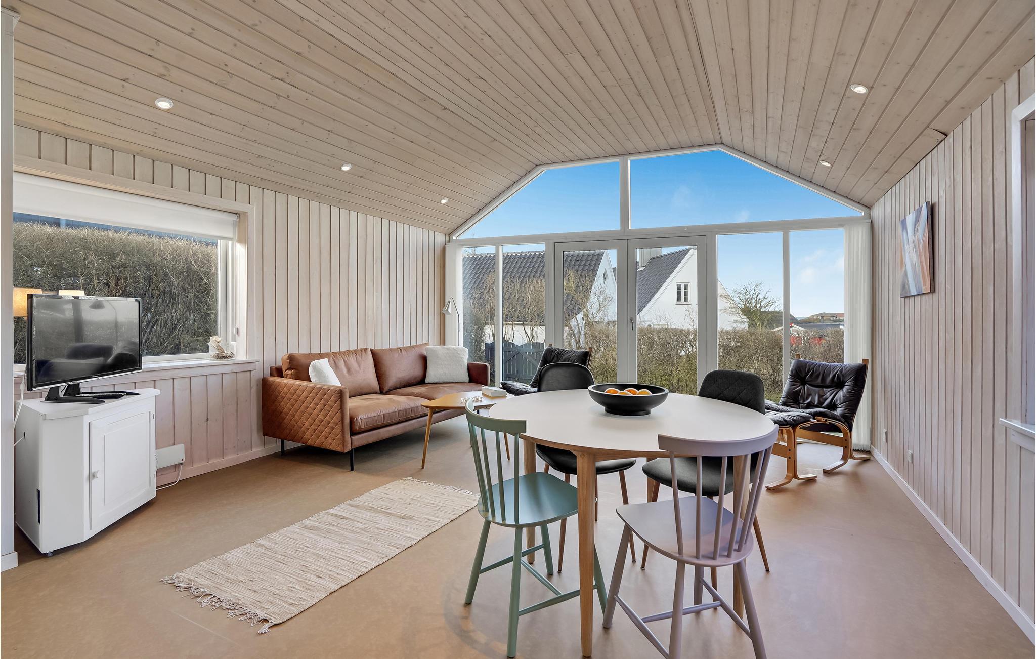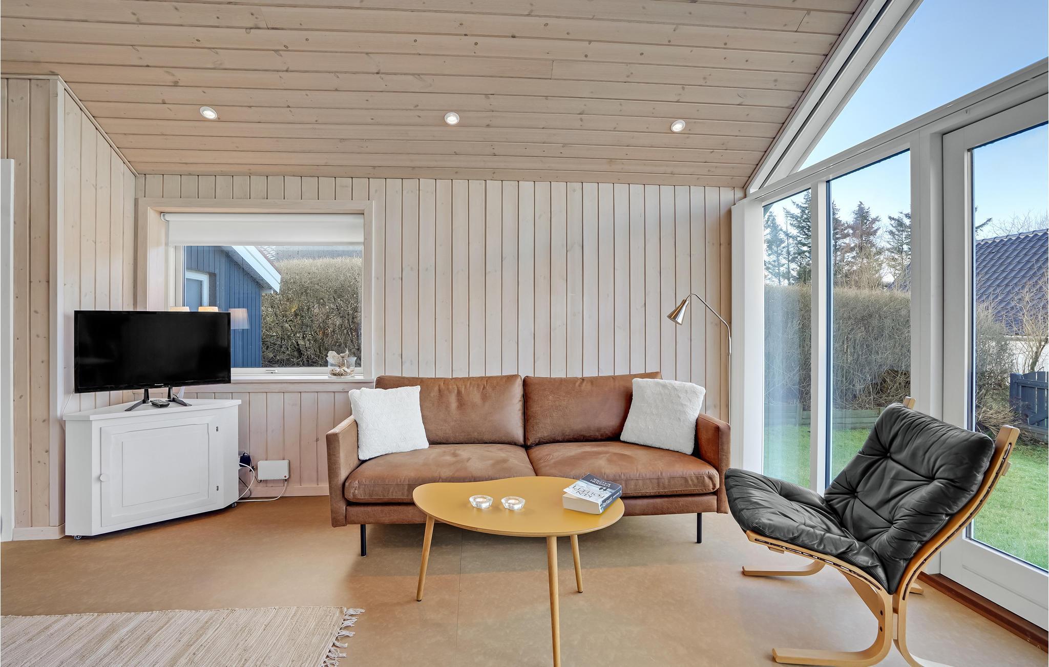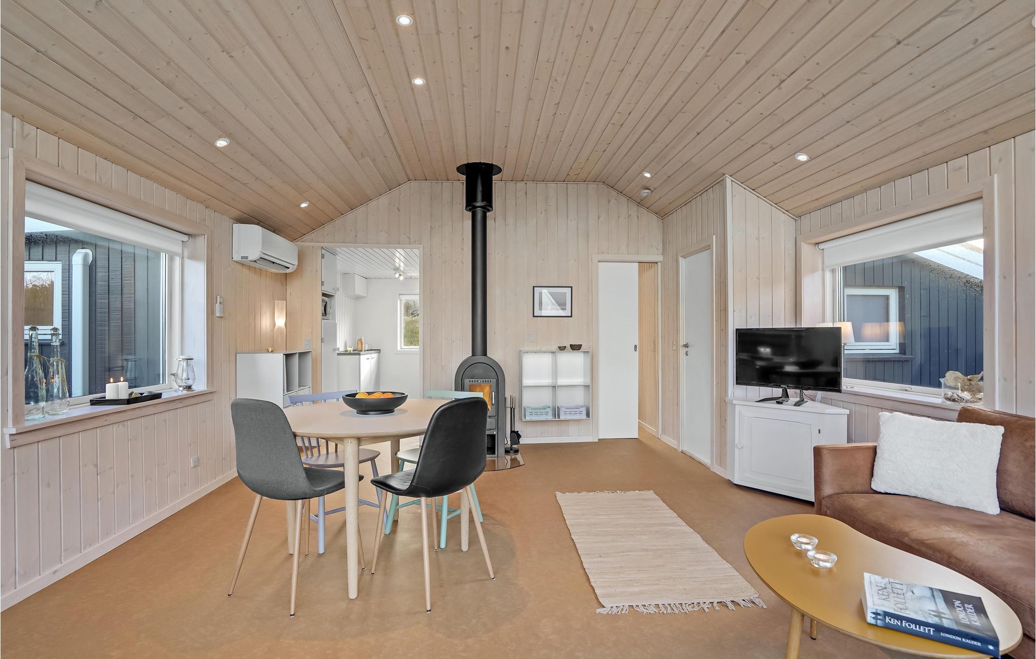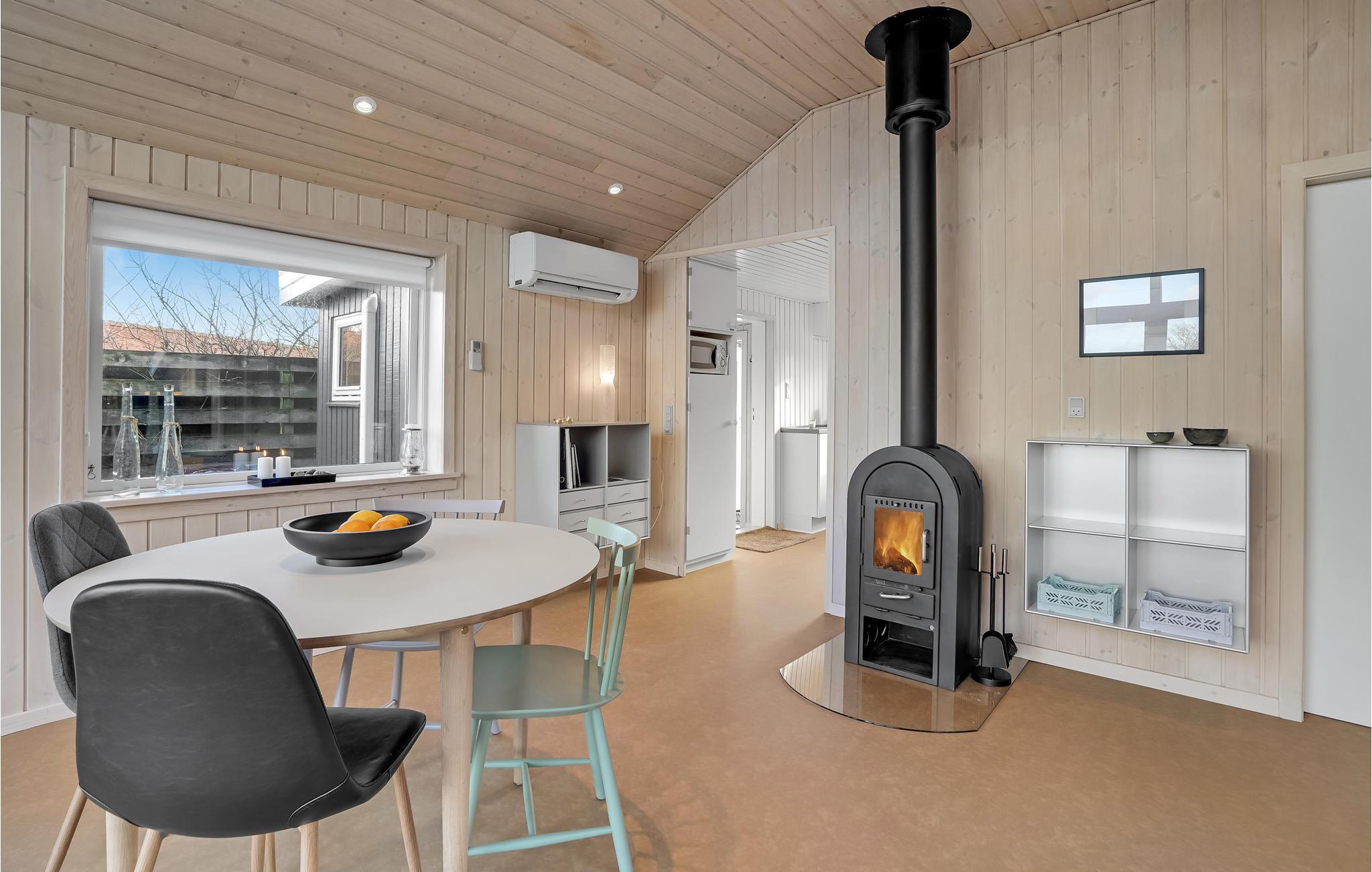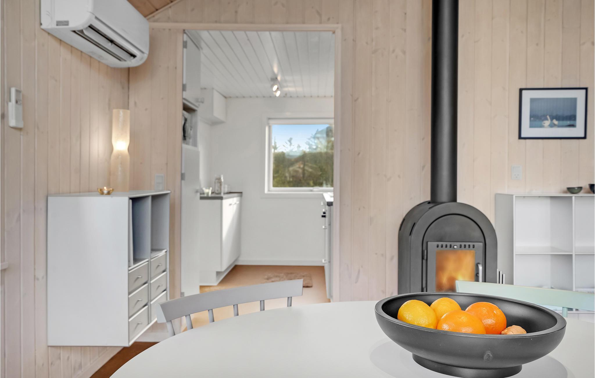 Velkommen til dette fine hus i Sjelborg, hvor I bor kun 100 m fra vandet. I stuen er der et stort vinduesparti for enden, som lukker masser af naturligt lys ind og sammen med det hyggelige møblement skaber en behagelig atmosfære. Der er plads til tre personer, hvilket gør boligen ideel til en lille familie. Der er brændeovn i stuen, så I kan varme jer på hyggelige vinteraftener. Hvis I har hund med, er den også velkommen.
