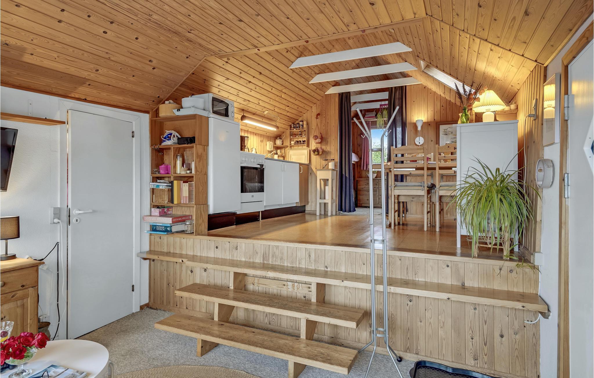 Lidt nord for Esbjerg ligger Sjelborg, og her finder I dette skønne sommerhus, som emmer af en nostalgisk charme. Rammerne er præget af trævægge og -lofter, hvilket skaber en varm og autentisk atmosfære. Når vejret er godt, kan I sætte jer med en kop kaffe på terrassen og nyde den fantastiske udsigt til havet. Glæd jer til dasedage, hvor I giver jer tid til at læse gode bøger i havemøblerne og ser fuglelivet eller kigger på, mens børnene leger.