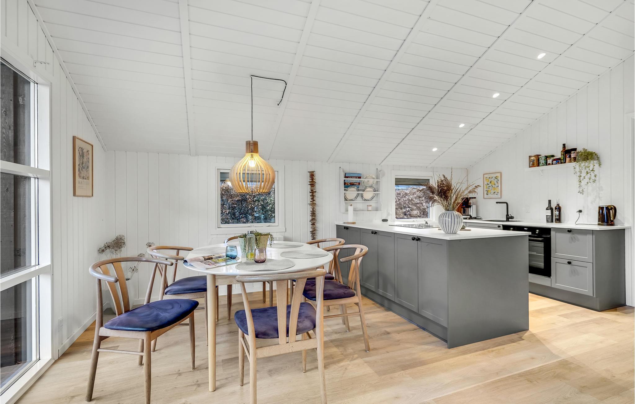 Træd ind i det smagfulde hus med jeres familie og føl jer straks hjemme. Ud over soveværelserne, som tilbyder jer privatliv om natten, vil den lyse stue blive jeres naturlige mødested. Her samles I for at lave mad, lege og slappe af sammen og nyde familiens tid til fulde. På kølige aftener kan I tænde op i brændeovnen, hygge jer med madlavning eller se en underholdende film. Hvis vejret og årstiden tillader det, kan I starte jeres morgen med en lækker morgenmad på den overdækkede terrasse og se jeres børn lege i haven.
