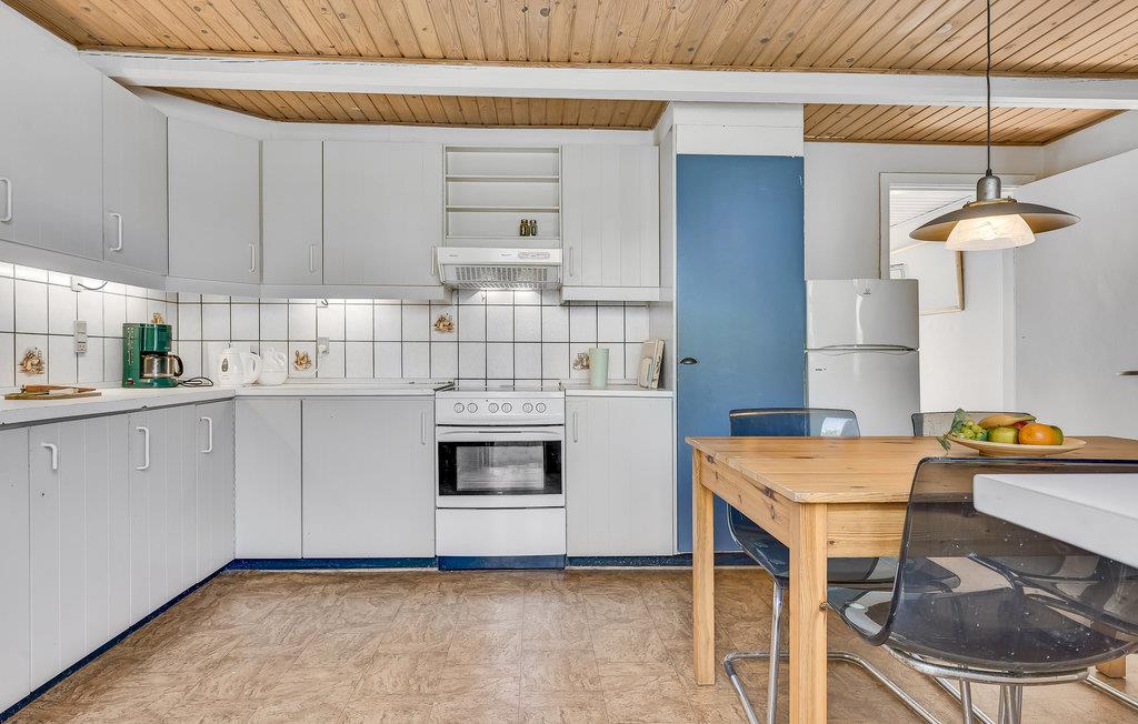 Kun en kort gåtur fra stenstranden inviterer dette moderne indrettede feriehus jer ind i de lyse værelser. Brug træskeen i det fuldt udstyrede køkken, og efter lange kystvandringer kan I forstærke jer med solide gryderetter ved spisebordet med udsigt over landskabet. Find jer godt til rette i sofaen, hel jer til en spændende bog eller organiser en hyggelig spilleaften.