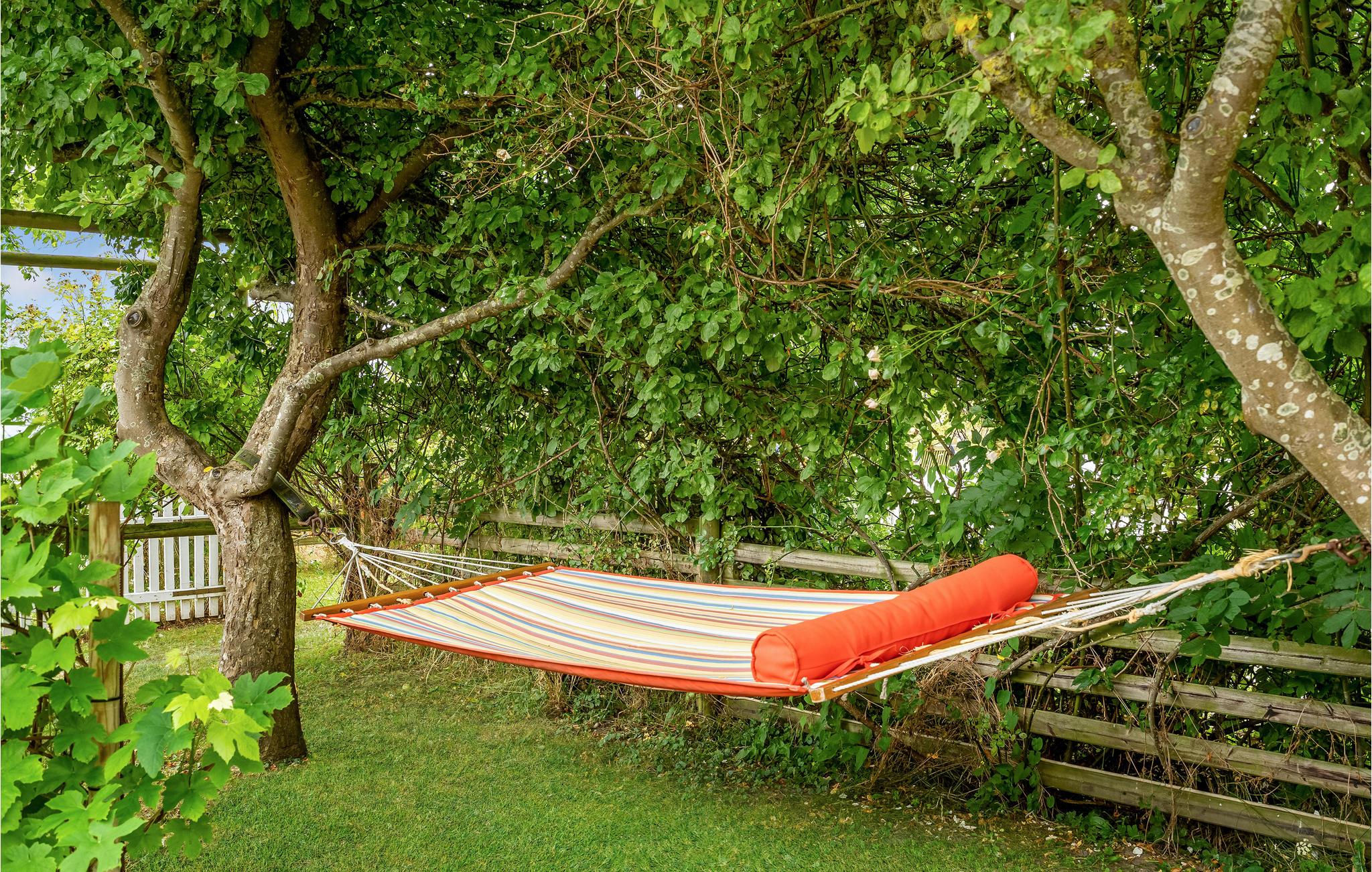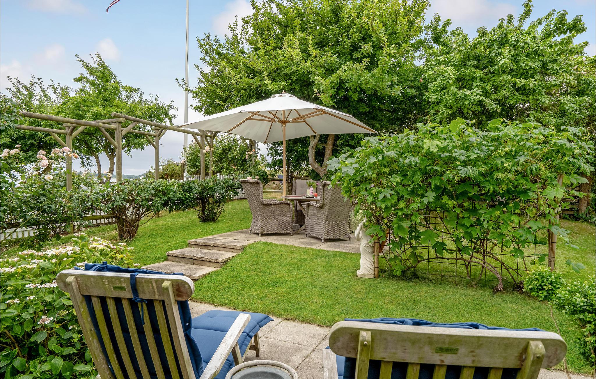 Lejligheden er indrettet med to soveværelser med hhv. en dobbeltseng to enkeltsenge. Det lille køkken ligger i åben forbindelse med stuen, hvorfra der er udgang til terrassen og den skønne have. Lejligheden råder også over et aktivitetsrum med bordtennis, lille poolbord og en hyggekrog. Bemærkt at det er uopvarmet, så det kan primært benyttes i de varmere perioder.