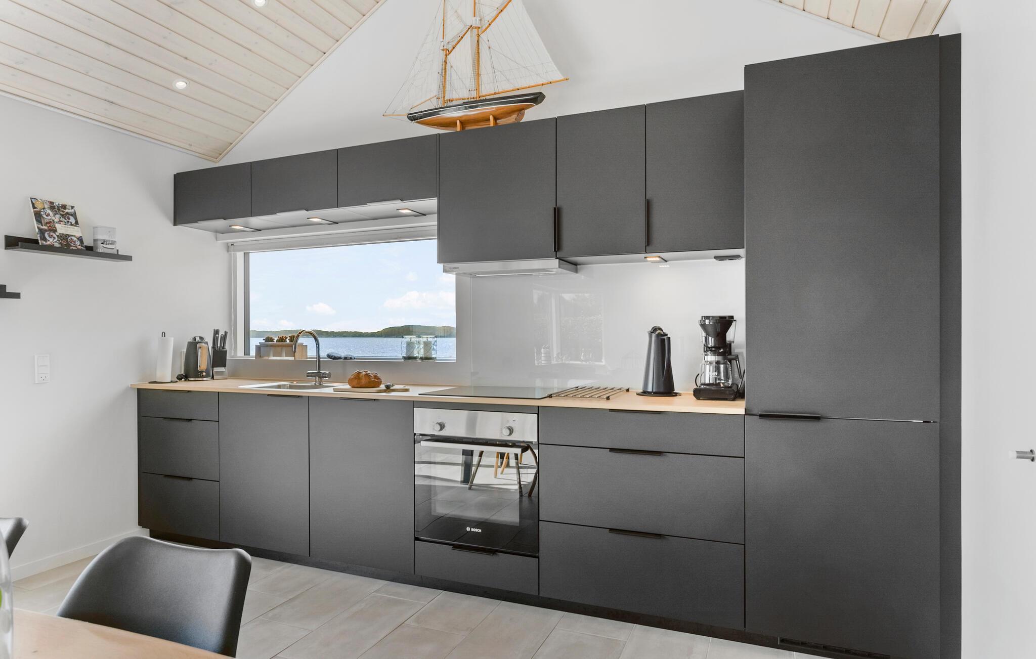 Ingen detaljer er tilfældige i dette helt igennem skønne sommerhus, som ligger lige ud til det sydfynske øhav. Her kan I se frem til en bolig, hvor alt emmer af ro og feriestemning. Det blå bælt danner kulissen rundt om opholdsrummet i al slags vejr, og indretningsløsningerne er moderne, behagelige og strømlinede. Udendørs præsenterer huset sig med sin elegante, sorte træfacade og en dejlig terrasse, der vender ud mod vandet. Her kan I sætte jer og mærke den friske havbrise, mens I nyder en kop kaffe eller bare suger til jer af de smukke omgivelser. Nede ved vandet kan I benytte jer af badestigen og snuppe en opkvikkende svømmetur.