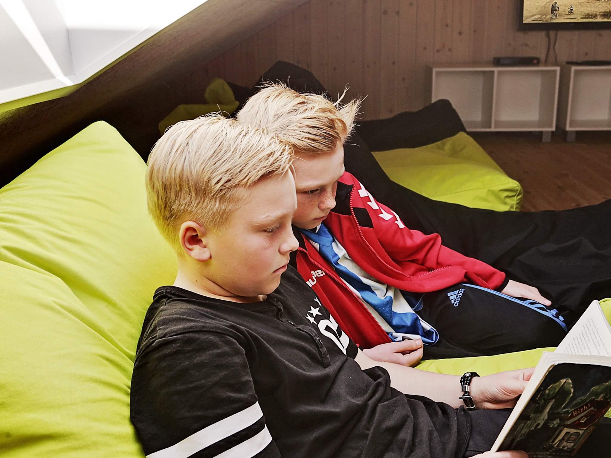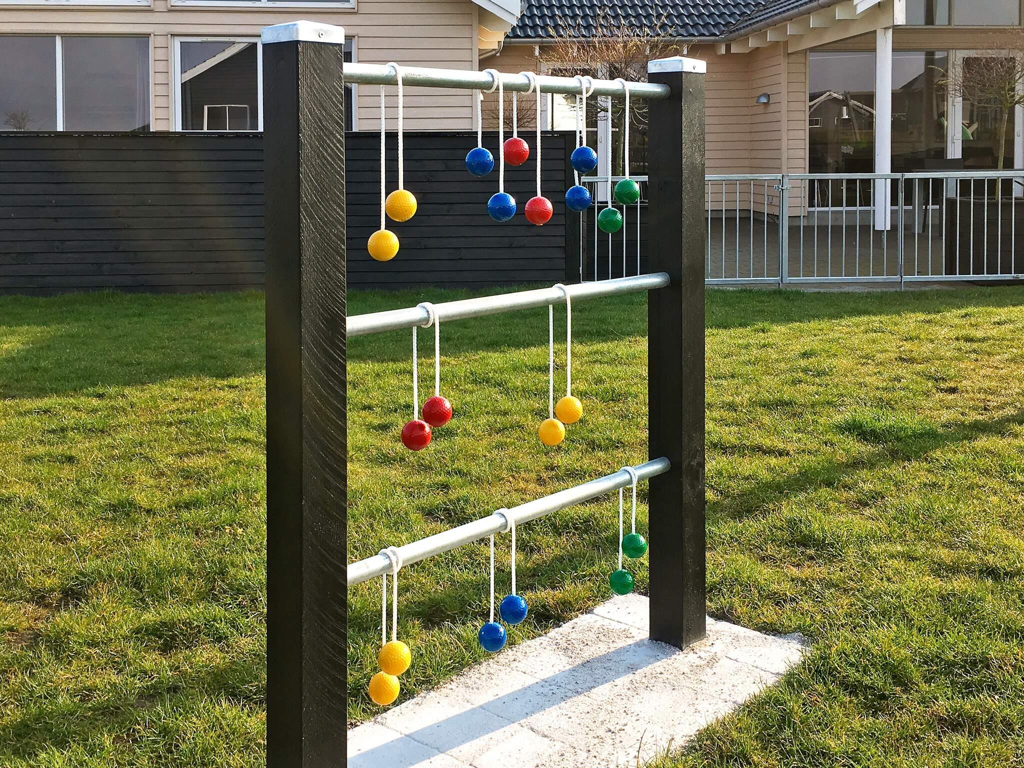 På den store grund, der omkranser huset, er der tænkt på de mindste gæster med en masse forskellige legesager. Der er bl.a. gynger, legetårn og sandkasse samt stigegolf og stangtennis. Derudover er der trampolin (brug af denne sker på eget ansvar/forsikring). Den store terrassen kan lukkes helt af, så børn og hunde ikke kan smutte væk.