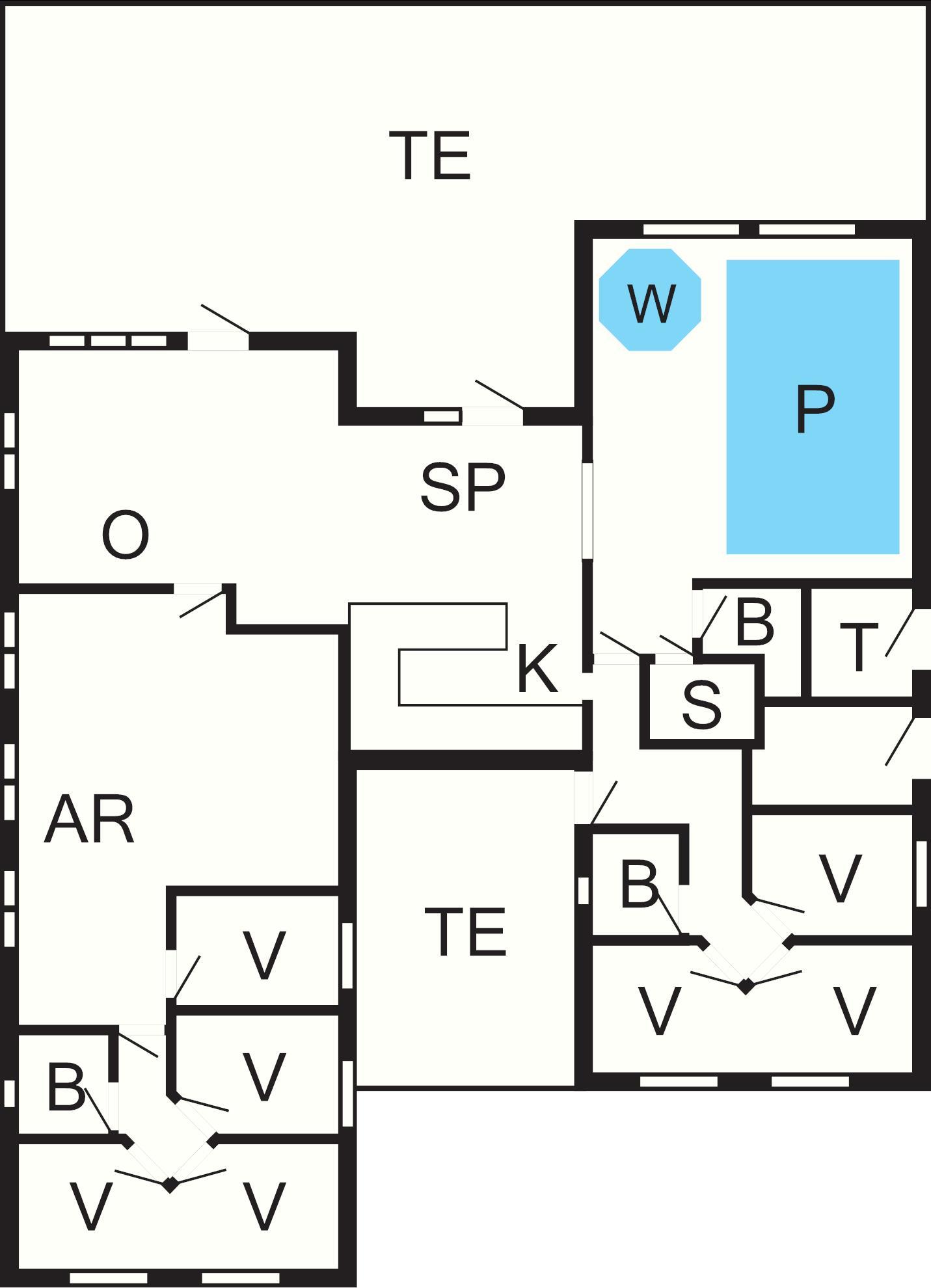 Huset rummer ganske enkelt alt, hvad hjertet kan begære af aktivitets- og udfoldelsesmuligheder. Huset er yderst rummeligt og veldimensioneret og bygget op omkring to separate soveafdelinger. Hver afdeling har et badeværelse og ekstra badeværelse i forbindelse med poolafdelingen. I alt tre badeværelser, der selvfølgelig alle har gulvvarme. Der er pulsebord og babybadekar.