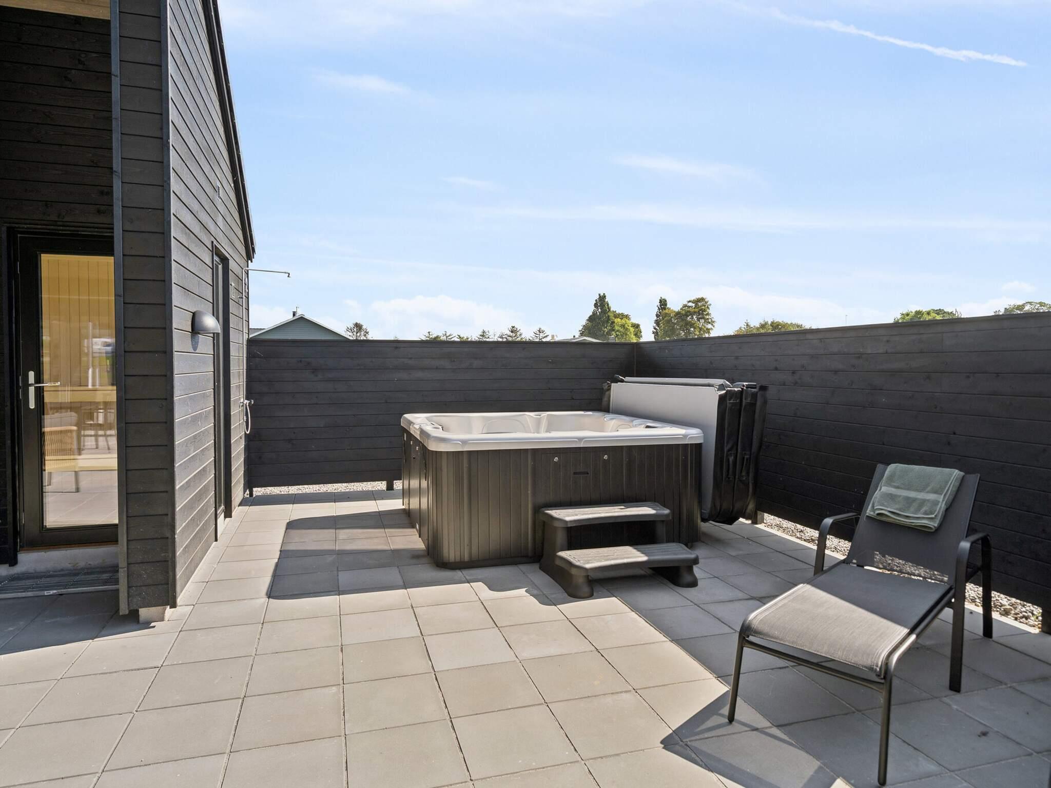 Udendørsfaciliteterne inkluderer en udendørs spa og sauna på den rummelige terrasse, der inviterer til afslapning og velvære. De overdækkede loungemøbler tilbyder et behageligt opholdsområde, mens haven giver plads til udendørs aktiviteter. Huset har også to stk. Type 2 opladere til Elbilen.