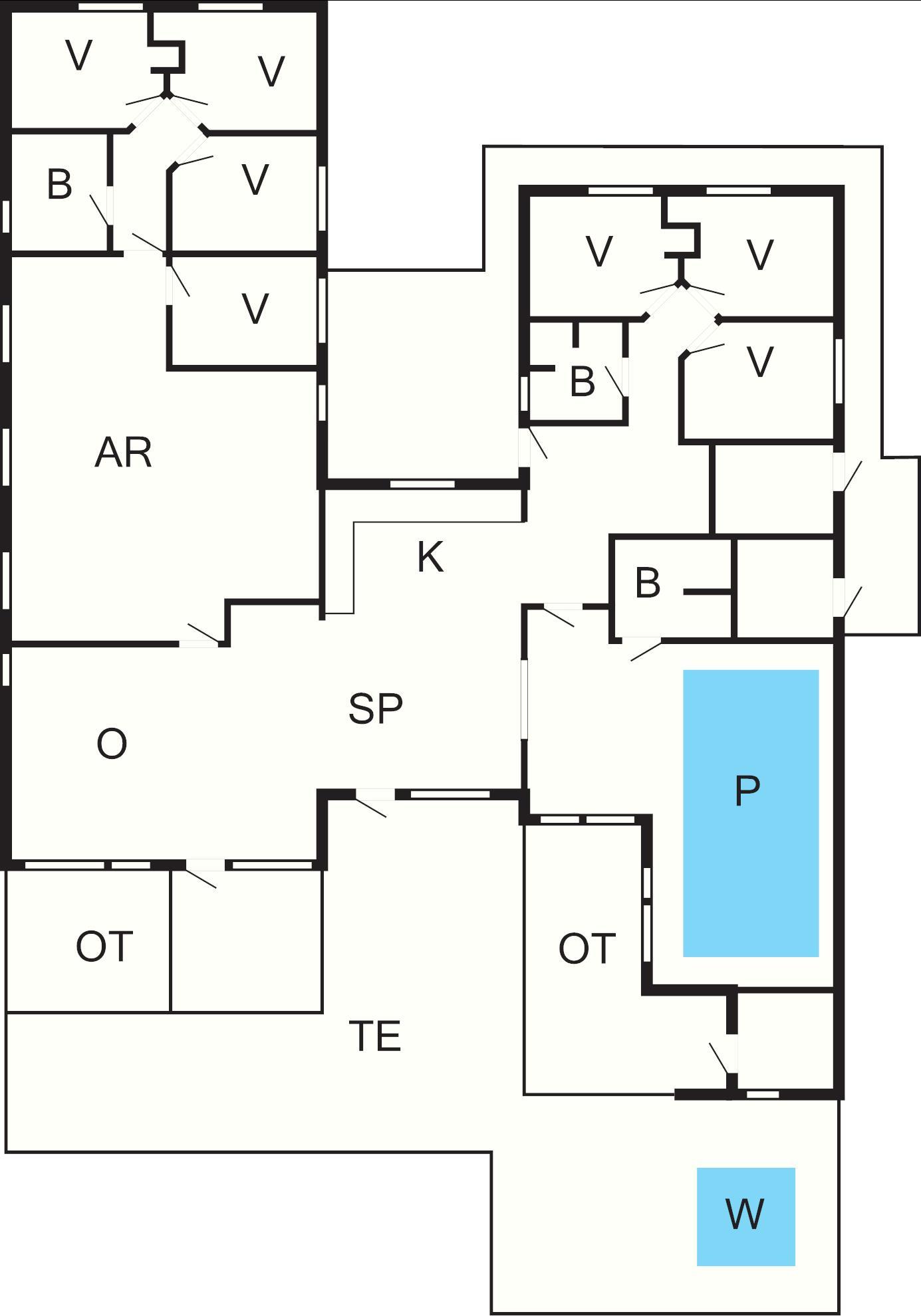 7 Soveværelser: (1DS)+(1DS)+(2S)+(2S)+(2S)+(2S)+(2S)