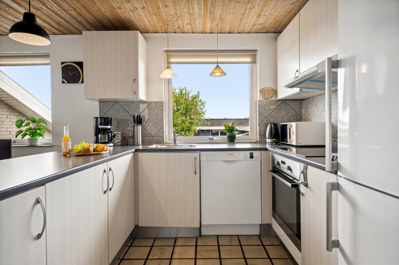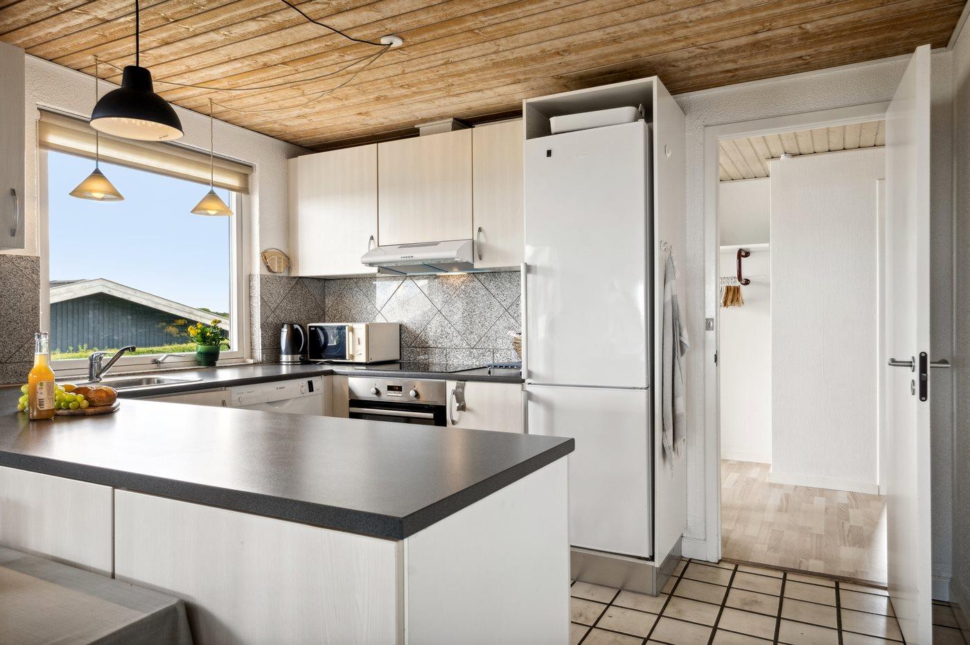 Køkkenet er udstyret med 1 køleskab. Der er 4 induktionskogeplader, varmluftovn, mikrobølgeovn samt opvaskemaskine.