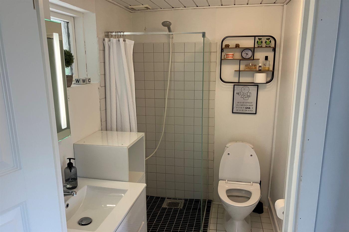 Der er 1 badeværelse med bruseniche og 1 toilet.. Der er gulvvarme på 1 badeværelse.