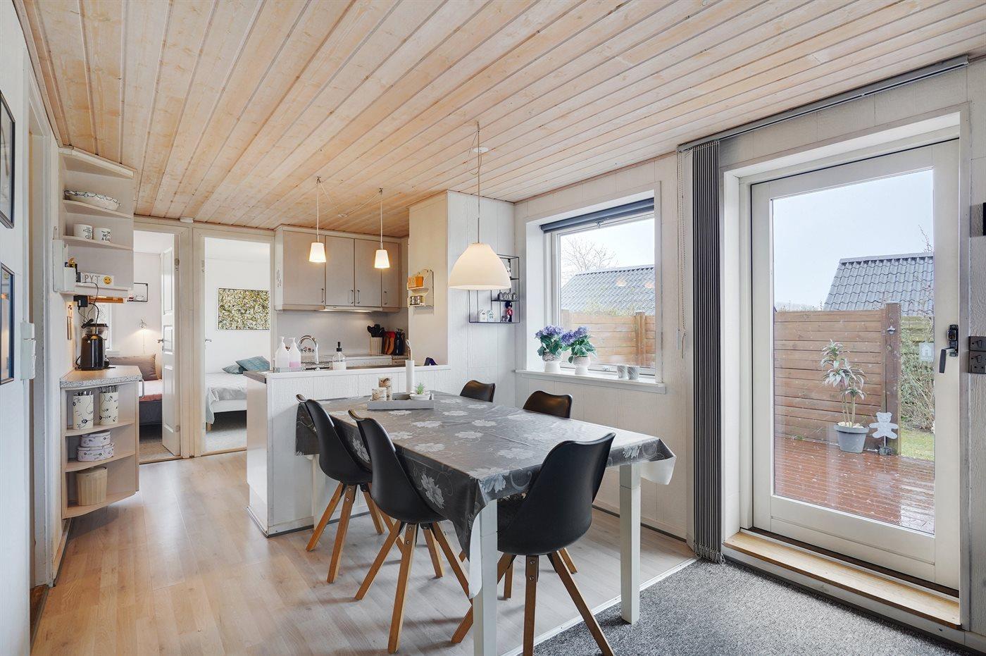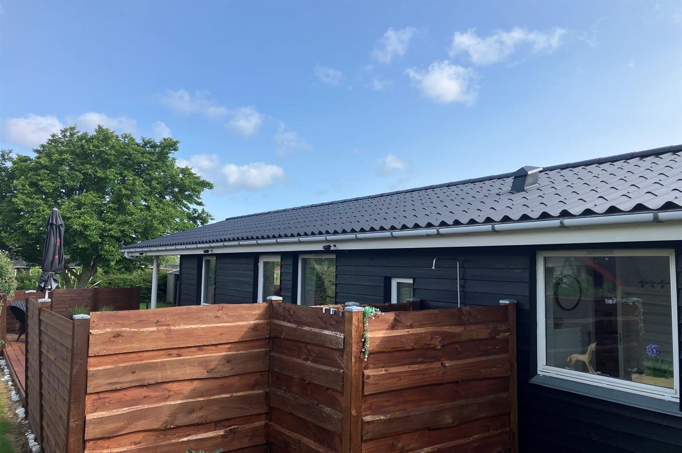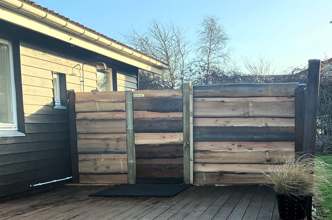 Dette pæne og hyggeligt indrettede sommerhus ligger i et familievenligt ferieområde - ikke langt fra børnevenlig badestrand. I forlængelse af terrassen er der udebruser med både koldt og varmt vand, som suplement til husets eksisterende badeværelse.