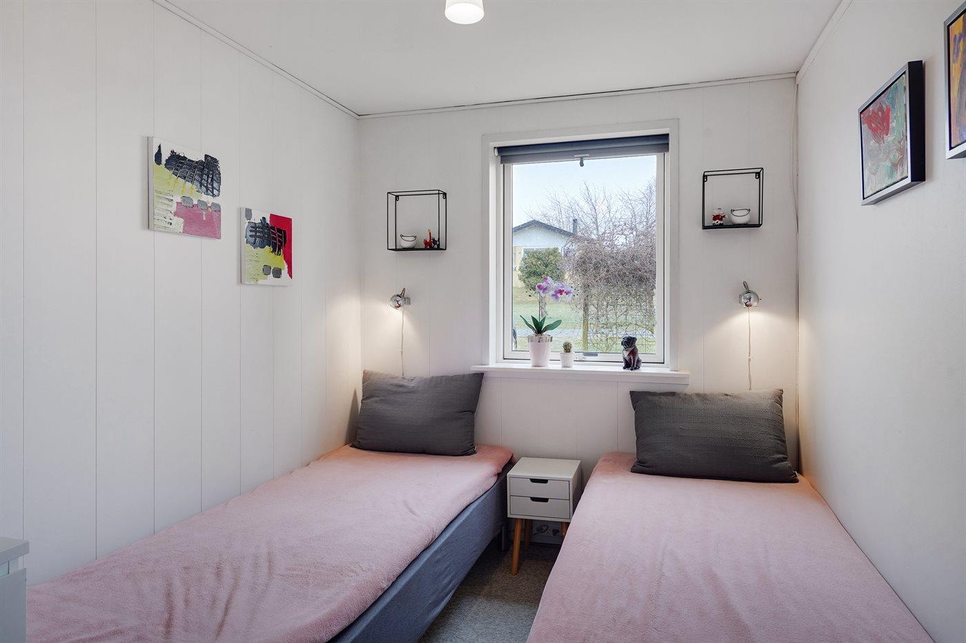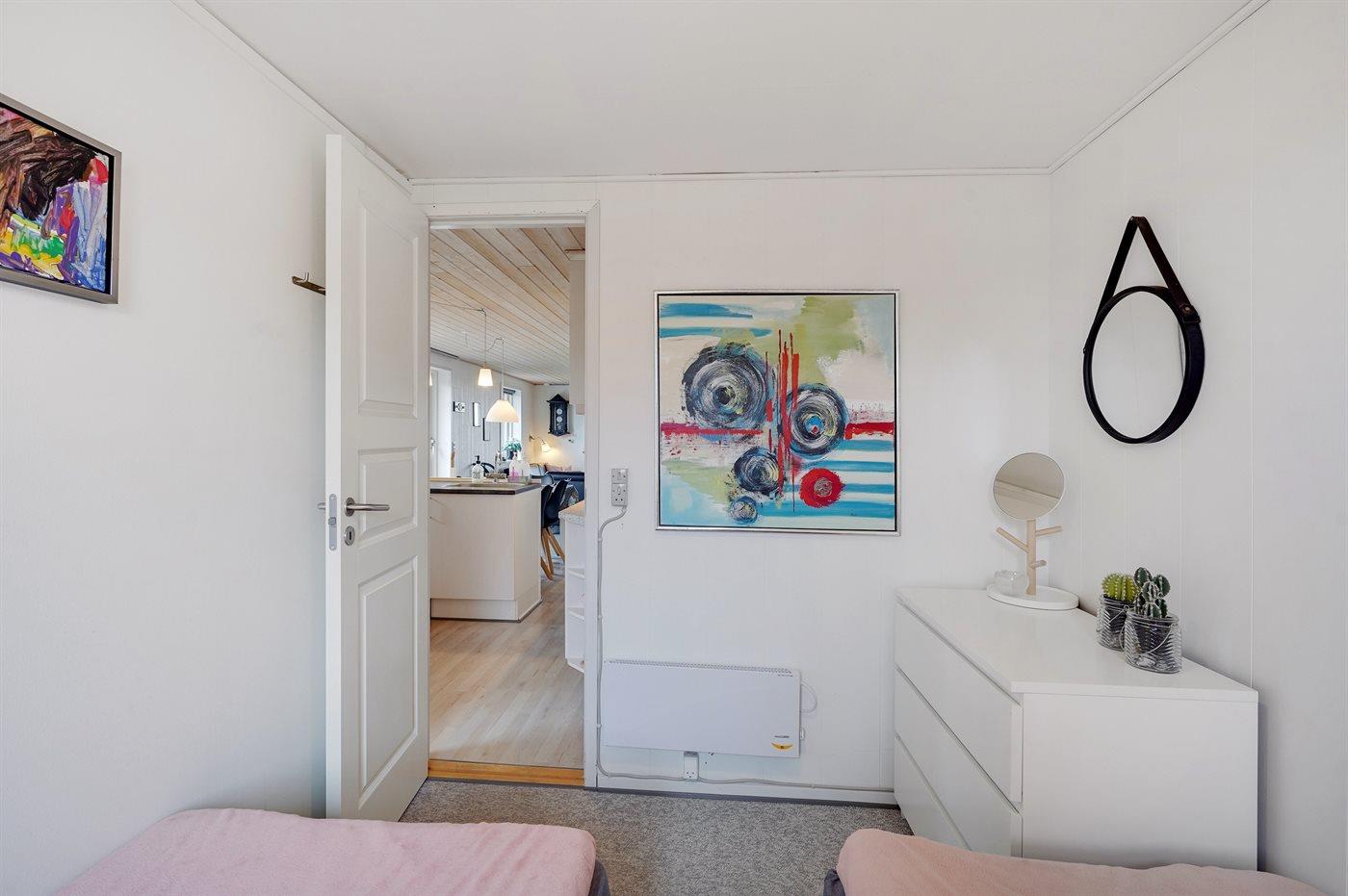 Der er i alt 3 soveværelser. Sovepladserne fordeler sig på: 4 sovepladser i dobbeltsenge. 2 sovepladser i enkeltsenge.