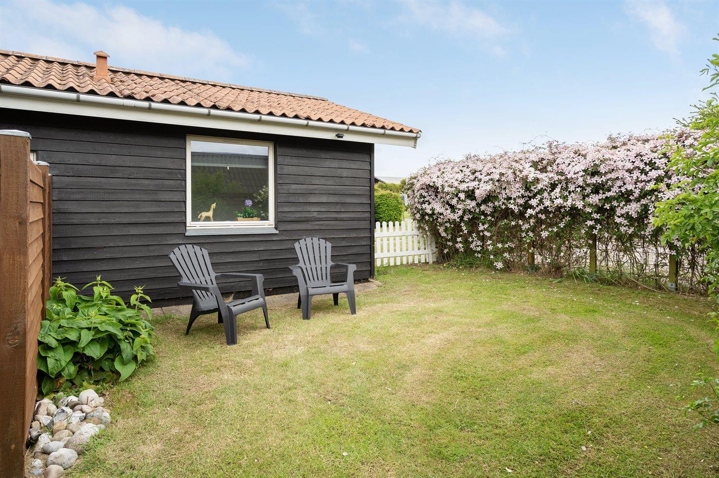 Ferieboligen er beliggende på en 850 m² stor havegrund. naturgrund. Der er 400 m til havet. Nærmeste forretning er beliggende i en afstand af 8000 m. Til ferieboligen hører 50 m² terrasseareal. Desuden er der 25 m² overdækket terrasse. Udendørs bruser. Grill til rådighed. Der er carport til rådighed. Parkering ved ferieboligen.