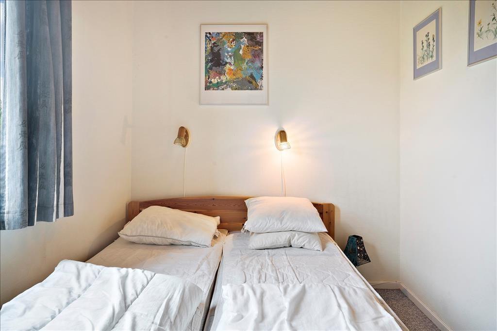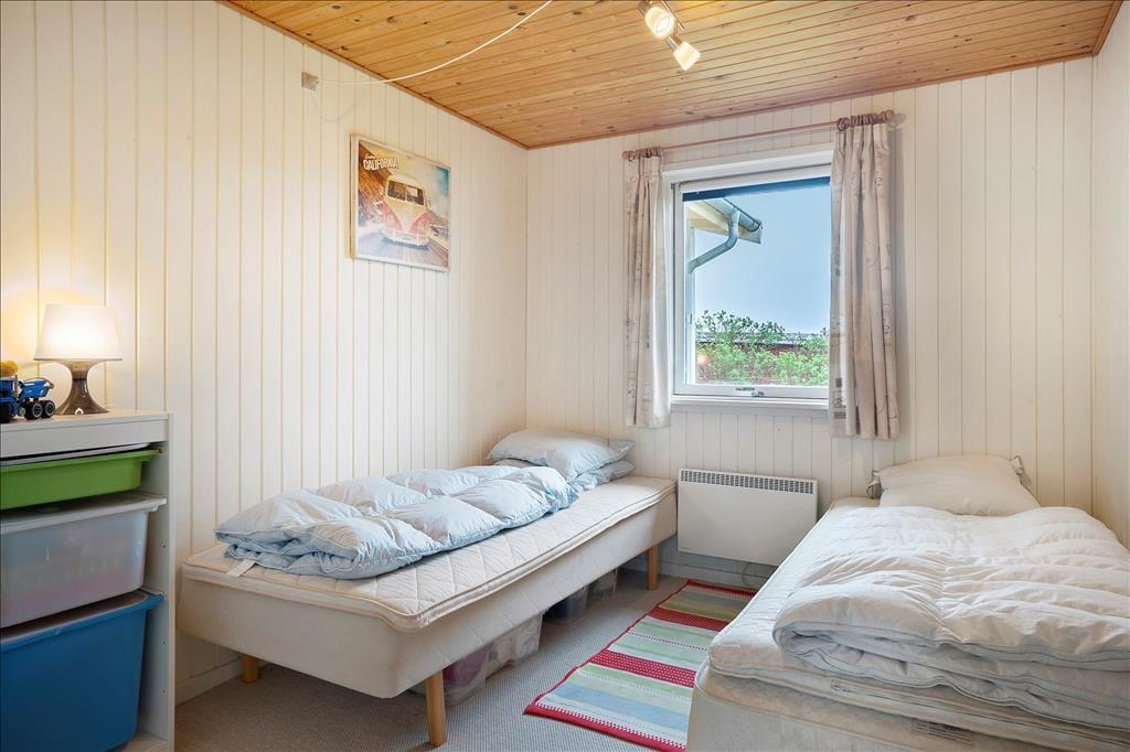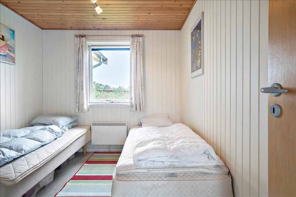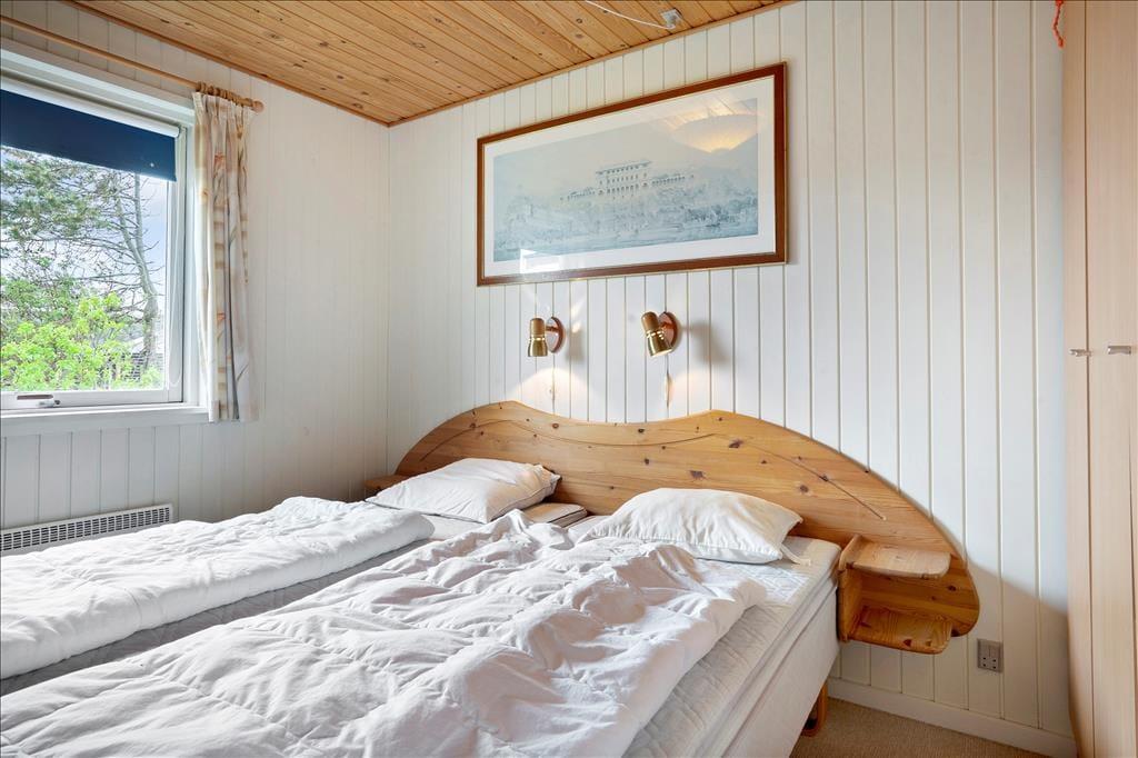 Når du træder ind i sommerhuset, mødes du af et lyst og venligt miljø, hvor stuen og køkkenet er smukt forbundet i et åbent rum. Køkkenet er nyere og veludstyret med en hyggelig spisekrog, hvor morgenkaffen kan nydes med udsigt til den frodige have. I stuen står en brændeovn klar til at sprede varme og hygge på kølige aftener, mens varmepumpen sørger for, at temperaturen altid er behagelig. Det er nemt at finde ro her, hvor hverdagen kan pakkes væk, og ferien kan nydes fuldt ud.