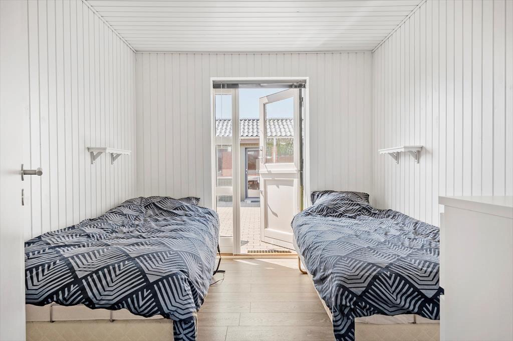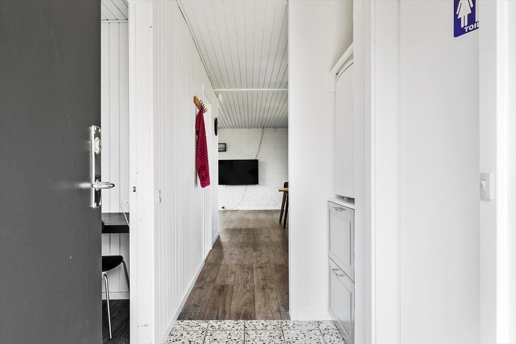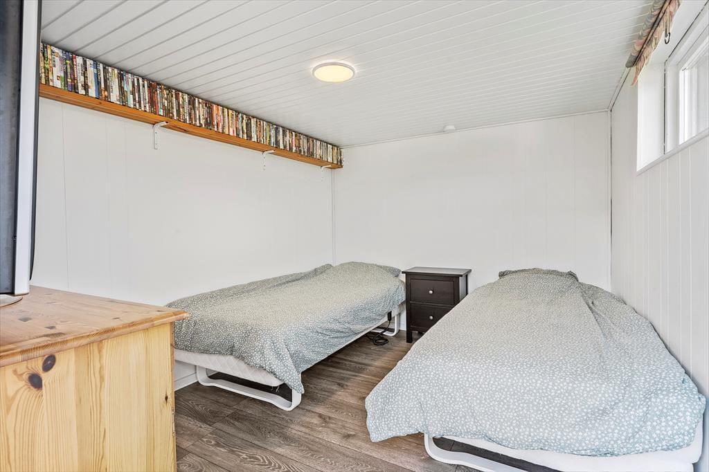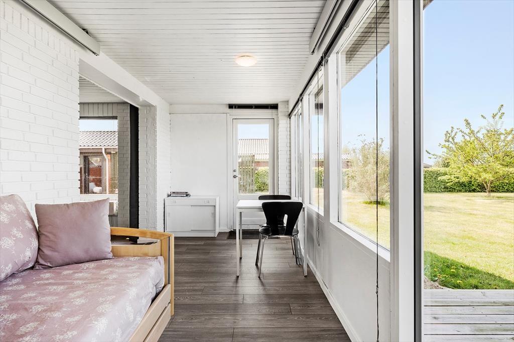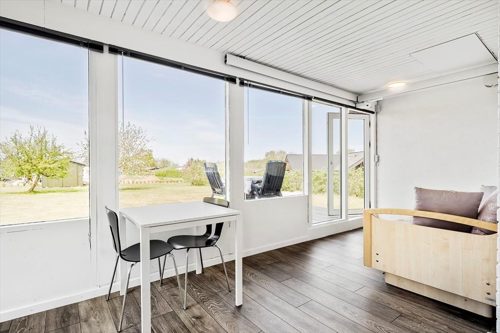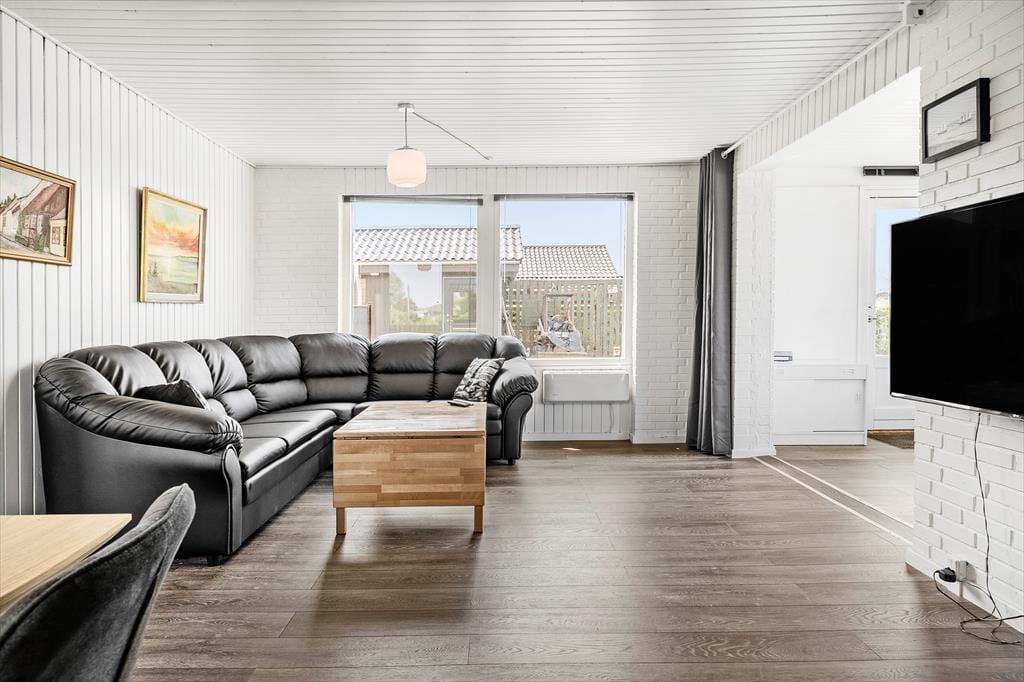 Indenfor bliver du mødt af et moderne og indbydende køkken alrum, hvor feriens måltider kan tilberedes og nydes i fællesskab. Køkkenet er veludstyret, og i forlængelse af det åbne rum finder du en hyggelig stue med brændeovn og varmepumpe, som skaber den helt rette atmosfære til både vinter- og sommerferier. Her er der plads til afslapning, spil og hyggelige aftener foran ilden, mens du gennem de store vinduespartier kan nyde udsigten til den grønne have. Udestuen, der er i åben forbindelse med stuen, giver dig mulighed for at forlænge de lune sommeraftener – eller starte dagen med en kop kaffe i morgensolen.