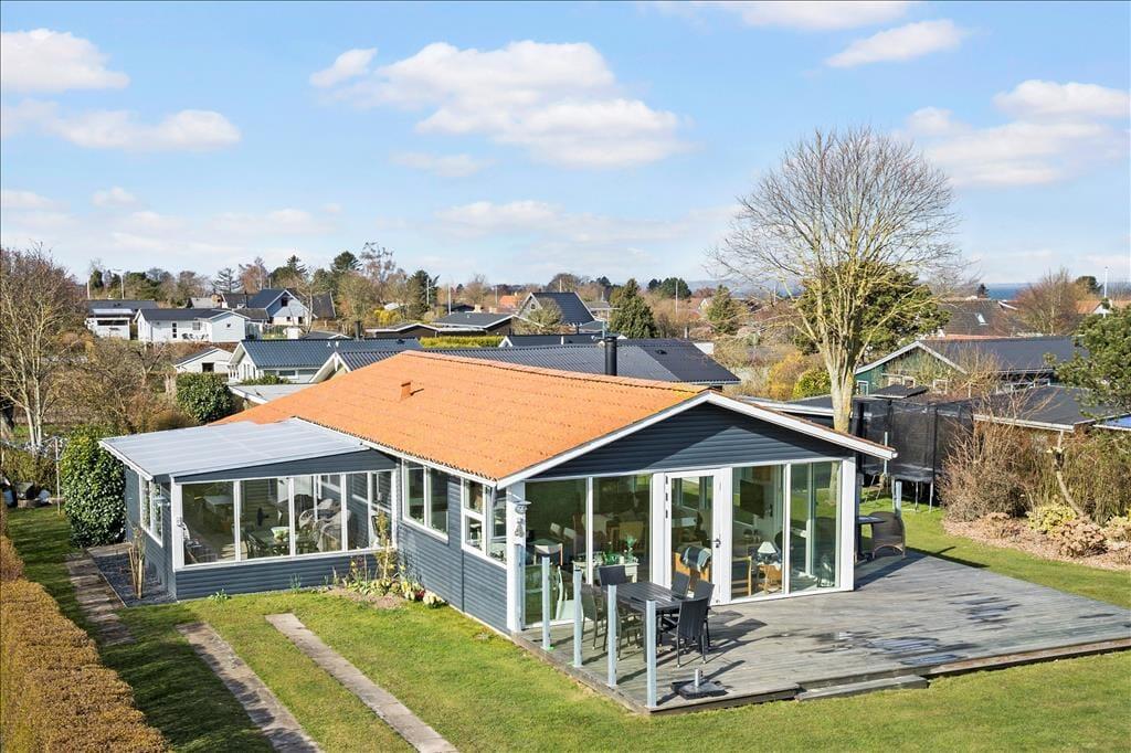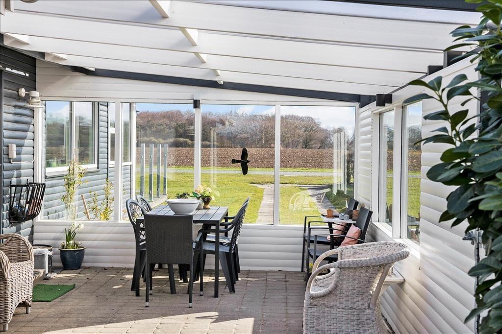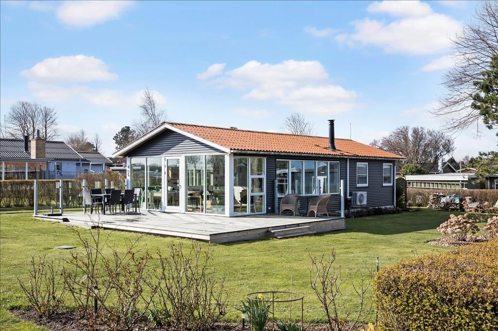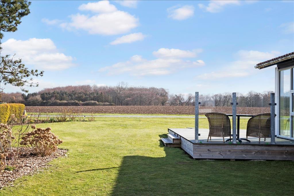 Udenfor venter der dig en skøn have med en stor græsplæne, hvor der er plads til både leg og afslapning. Her finder du også en trampolin, som vil være et hit blandt de yngste feriegæster. Fra terrassen, der er placeret så du kan nyde solens stråler fra morgen til aften, er der en fantastisk udsigt over havet. Terrassen indbyder til lange, hyggelige grillaftener, hvor du kan lade dagens oplevelser synke ind, mens du nyder den friske brise og udsigten over vandet. Haven er indrettet med tanke på både hygge og privatliv, så du kan finde ro og fred i de naturskønne omgivelser.