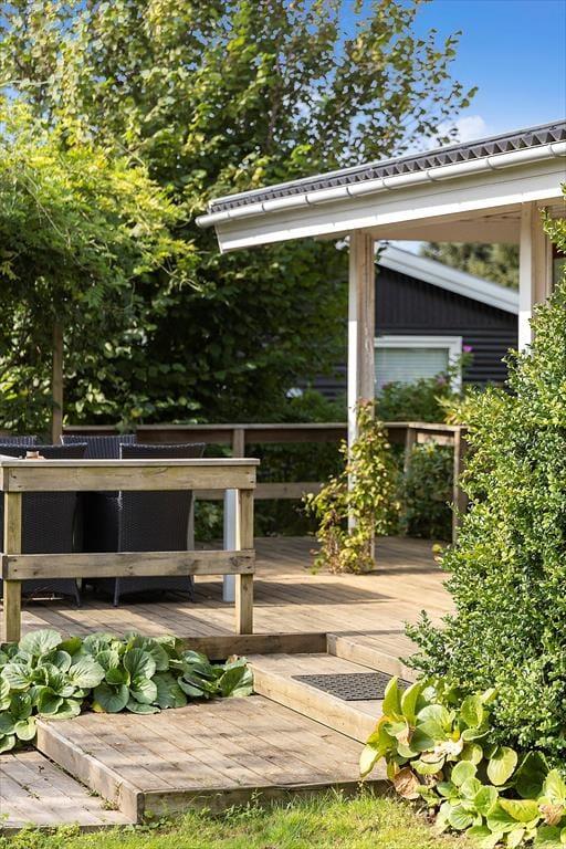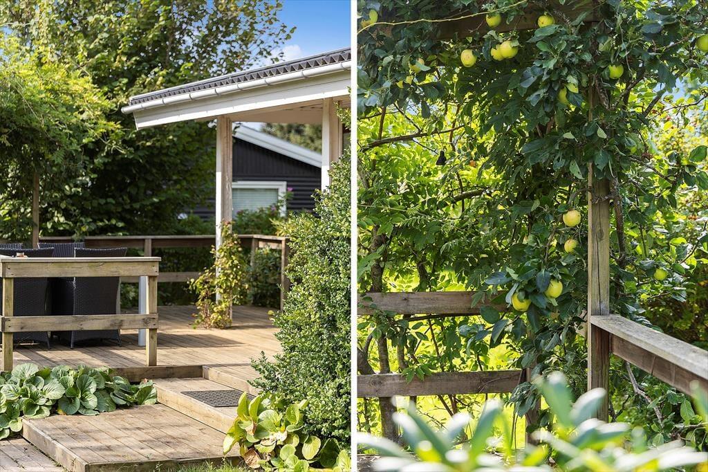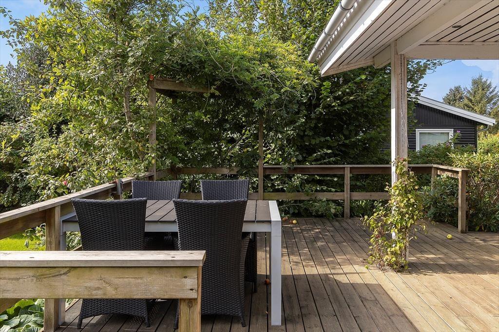 Sommerhusets udendørsområder er en sand oase for både børn og voksne. Rundt om huset findes flere terrasser, hvor du kan nyde solen eller finde skygge alt efter humør. Den store græsplæne inviterer til leg og aktiviteter, og med gyngestativet er der rig mulighed for at underholde de mindste i familien. Haven er helt lukket, så du kan slappe af, mens børnene leger frit. Når aftenen falder på, er det oplagt at tænde op i grillen og samle familien omkring et dejligt måltid under åben himmel.