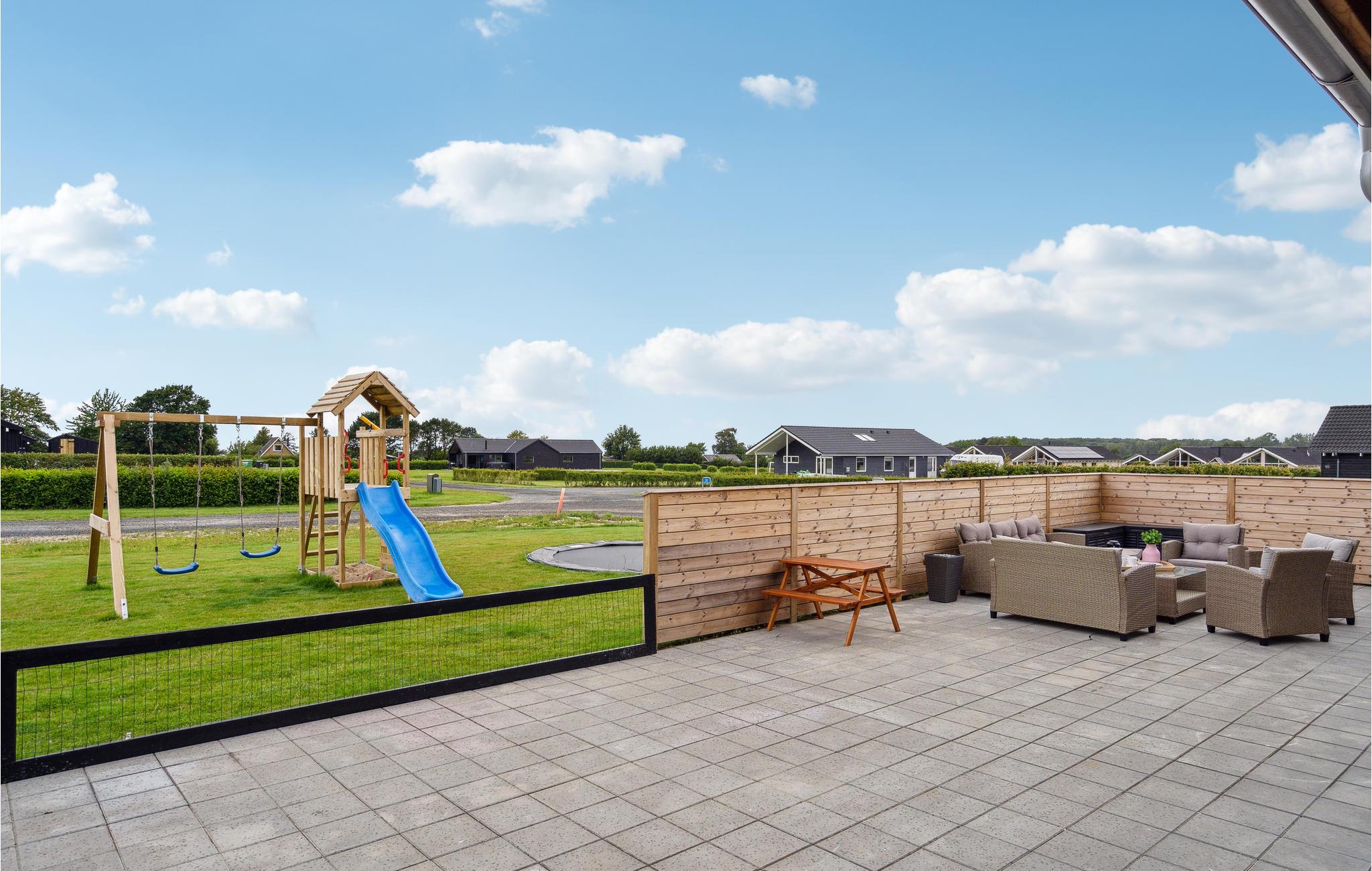 På de lune sommerdage kan I flytte selskabet ud i haven, hvor der er legestativer til børnene og en hyggelig terrasse, hvor I kan grille og nyde de lange, lyse aftener.