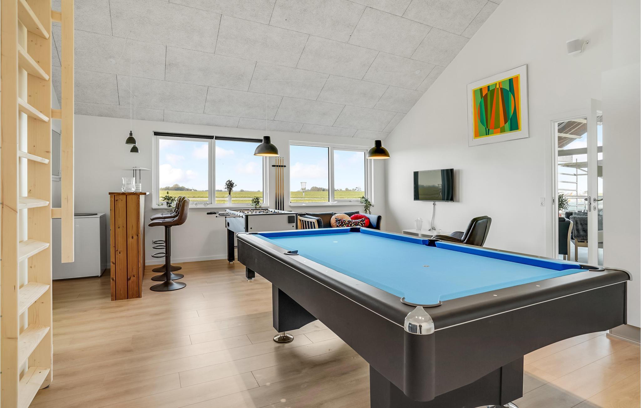 Flot, moderne indretning og mange skønne detaljer skaber rammen om en herlig ferie i dette sommerhus, hvor I kun skal koncentrere jer om at slappe af. Dæk op til dagens måltider ved det lange spisebord i det lækre opholdsrum og snup en hurtig dyst ved pool- eller bordtennisbordet, når I trænger til at komme op at stå. I kan også se frem husets poolområde, som både har rutsjebane og spa, så her er der lagt op til en masse gode timer. Efter en lang dag på farten kan I læne jer tilbage i saunaen eller sætte jer med en god bog i sofaen, men ilden knitrer hyggeligt i brændeovnen.