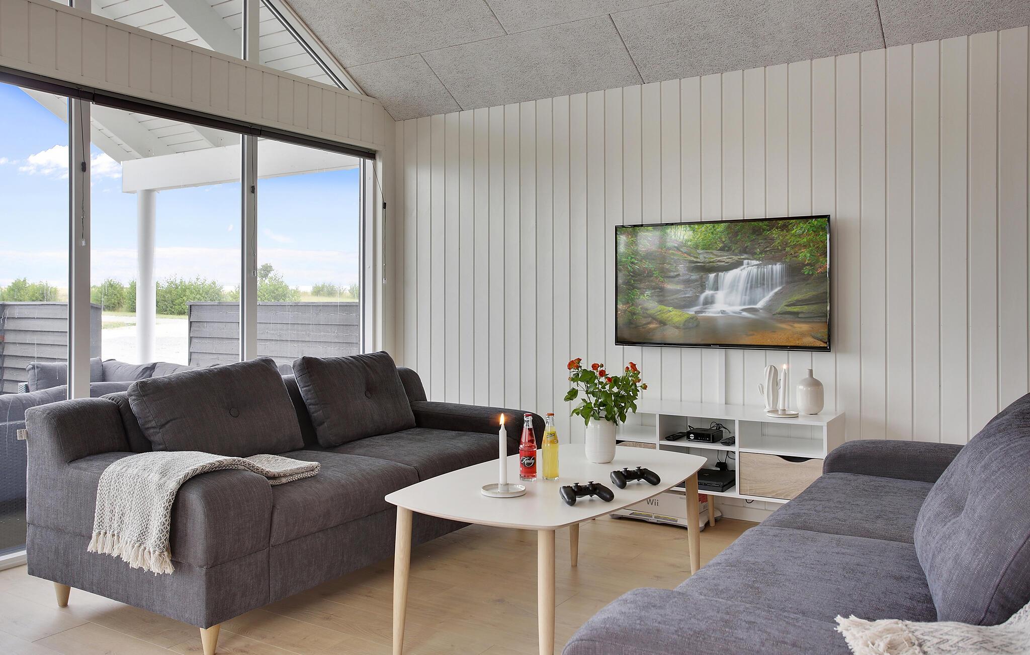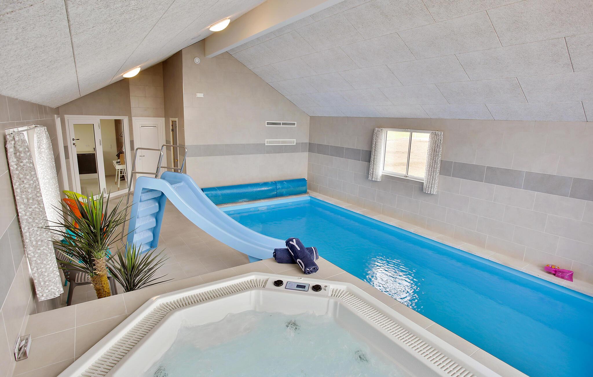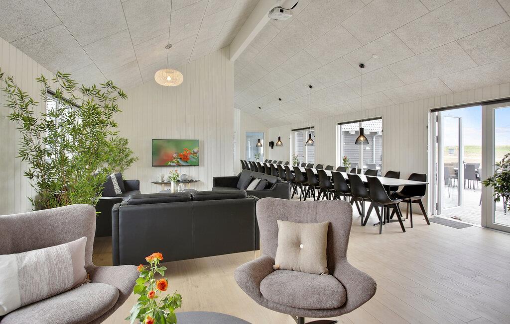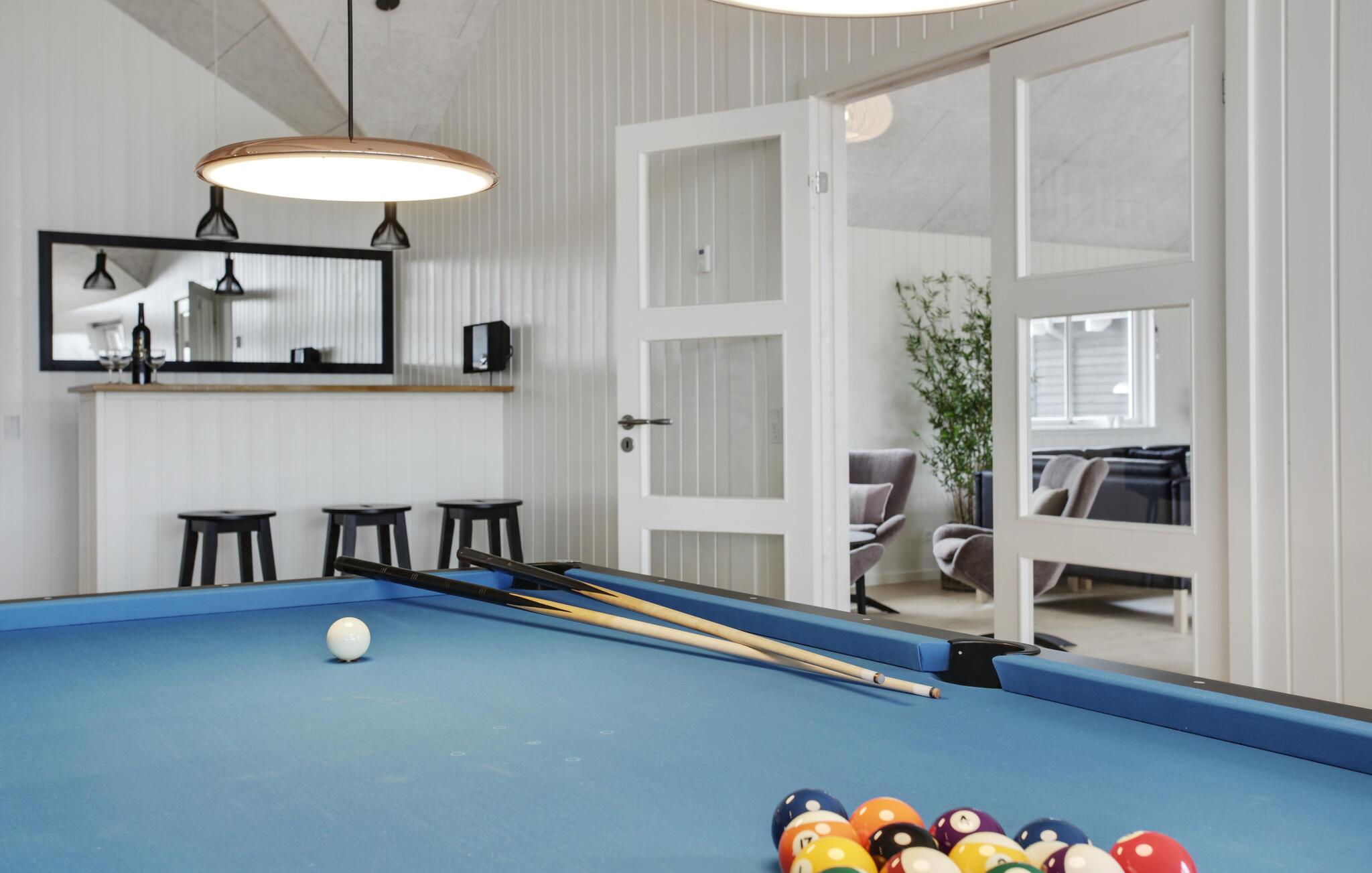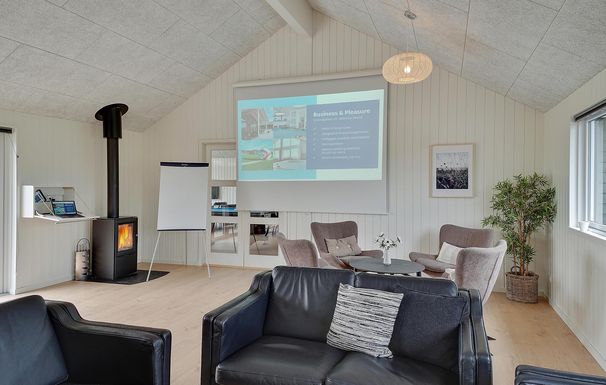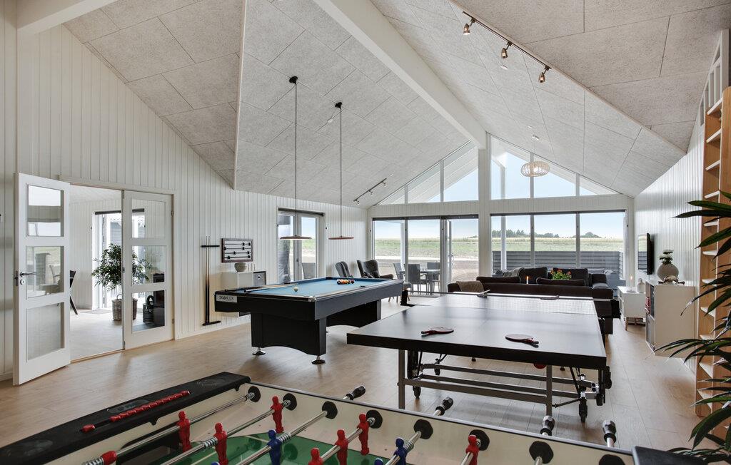 Hvis I er på udkig efter en veludstyret base for et ophold med hele den udvidede familie, og skal I måske endda fejre en af de store mærkedage, er dette lækre hus ved Skåstrup Strand det helt rette valg for jer. Her får I, ude som inde, godt med komfort og faciliteter, der sikrer en masse sjov og hygge på tværs af generationerne. Indvendigt emmer det af kvalitet over hele linjen, og prikken over i'et er poolområdet med vandrutsjebane, modstrømssystem og romerske trappetrin, som børnene kan boltre sig med. Og måske de voksne skal tage den lidt med ro i spabadet eller saunaen? Husets omdrejningspunkt er det store aktivitetsrum og det veludstyrede køkken, der også fungerer som spise- og opholdsstue. Sofaerne er komfortable og indbyder til hyggelige aftener med brætspil eller en god film til langt ud på aftenen. Aktivitetsrummet har en bar, og stuen har en hyggelig brændeovn, der bare gør det endnu hyggeligere, hvis vejret bider lidt fra sig.