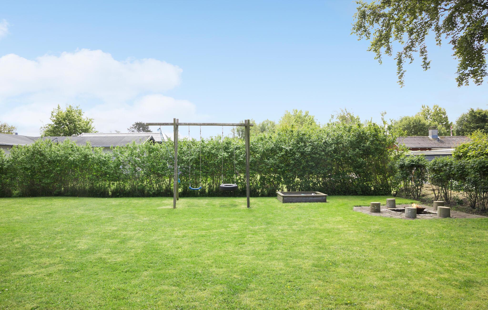 Brug også den store og indbydende have, hvor jeres børn kan lege på gyngerne eller i sandkassen. Om aftenen kan I grille sammen på terrassen eller samles omkring bålstedet. Når det bliver lidt køligere, kan I hygge jer i udestuen og planlægge morgendagens aktiviteter i jeres dejlige ferieområde.