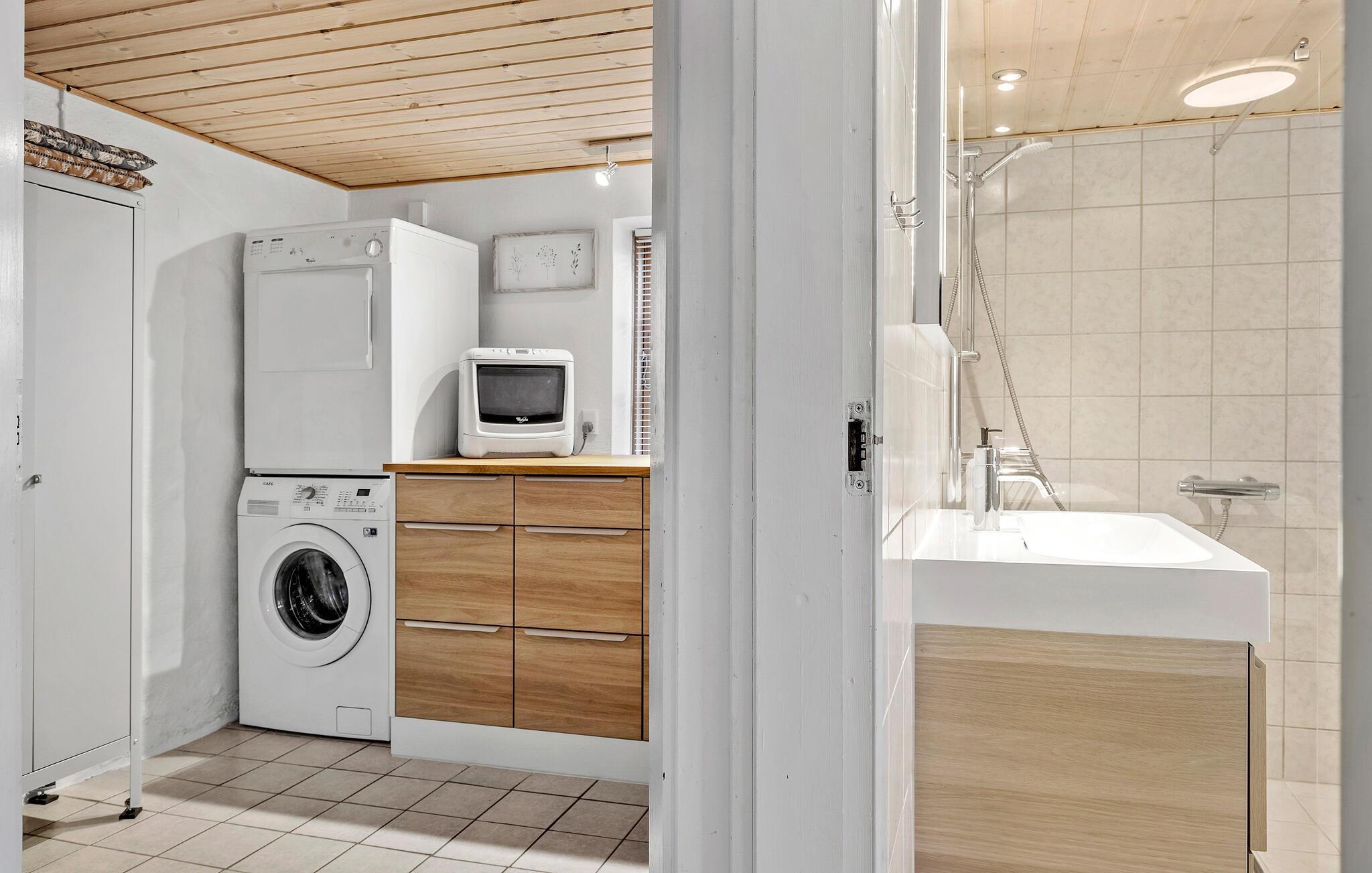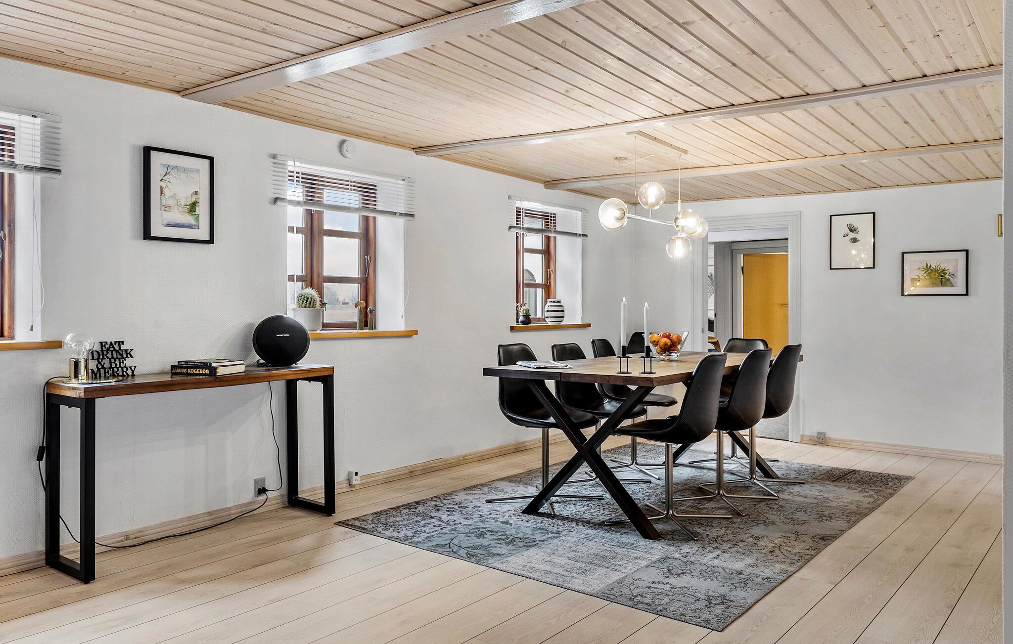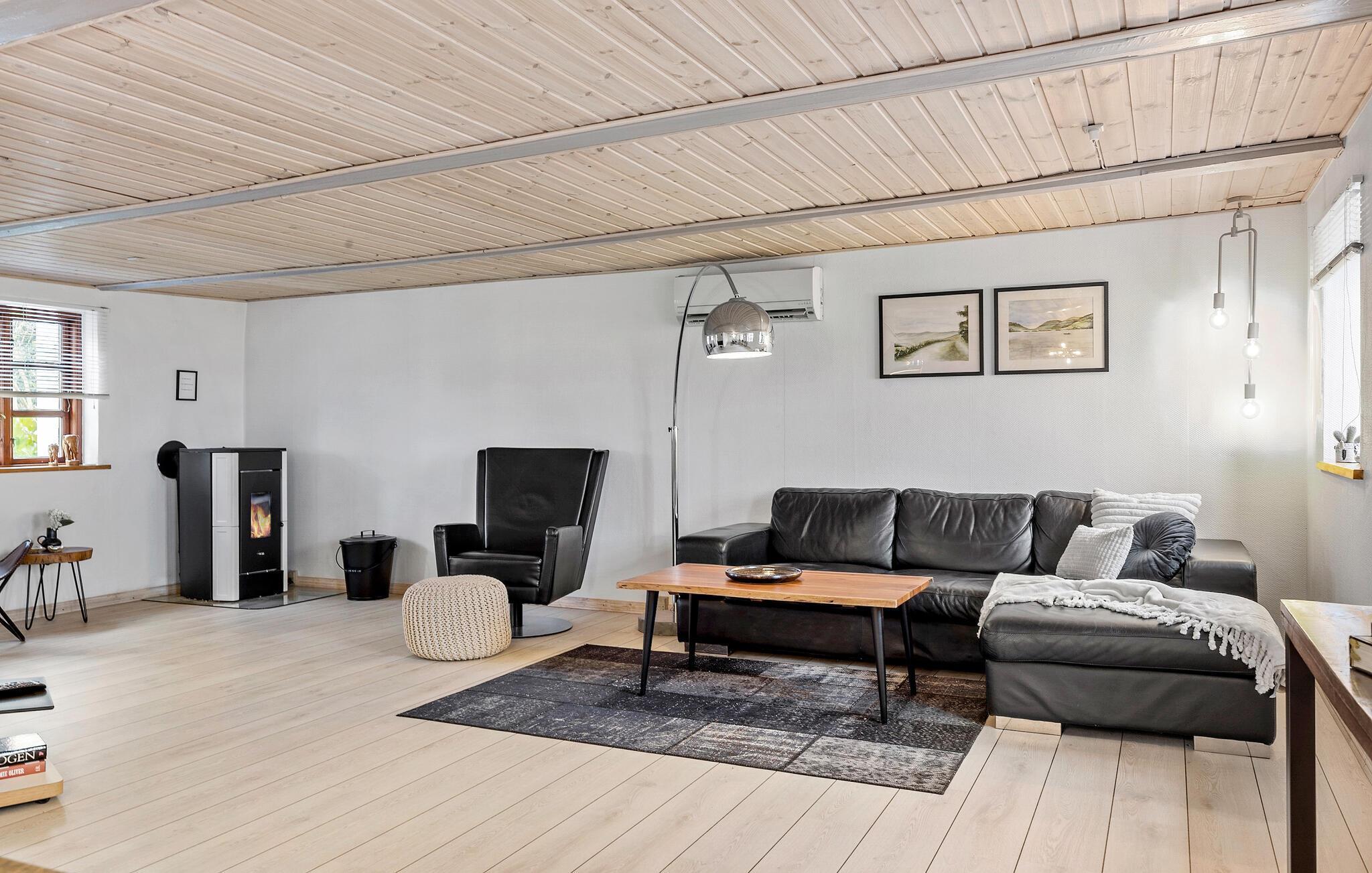 Træd indenfor og glæd jer til at sætte hverdagen på pause i dette hyggelige feriehus sammen med familien. I kan nyde den grønne udsigt, mens I laver mad i det moderne køkken og derefter dække op til dagens måltider i den stilfulde spisestue. Efter en dag fuld af oplevelser kan I slappe af i den komfortable sofa og streame en god film, mens varmen breder sig fra ilden i pilleovnen.